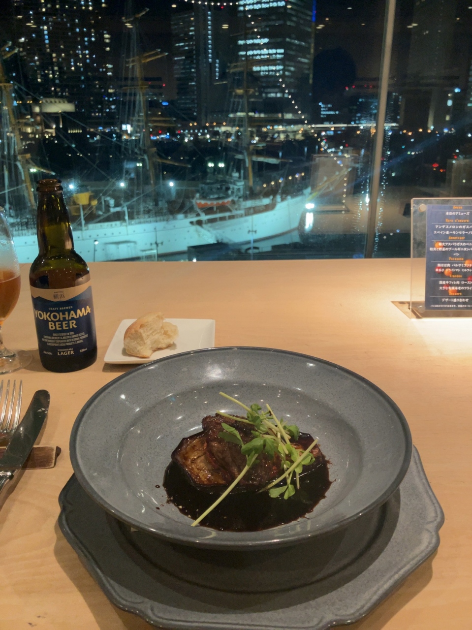 知人がカウンター席を予約してくれていました。夕焼けがきれいになりはじめた時間で、夜になるにつれてとっても素敵な眺めに。お料理はメロンのガスパチョが意外な味でした。鮪や海老などはとってもおいしかったです。