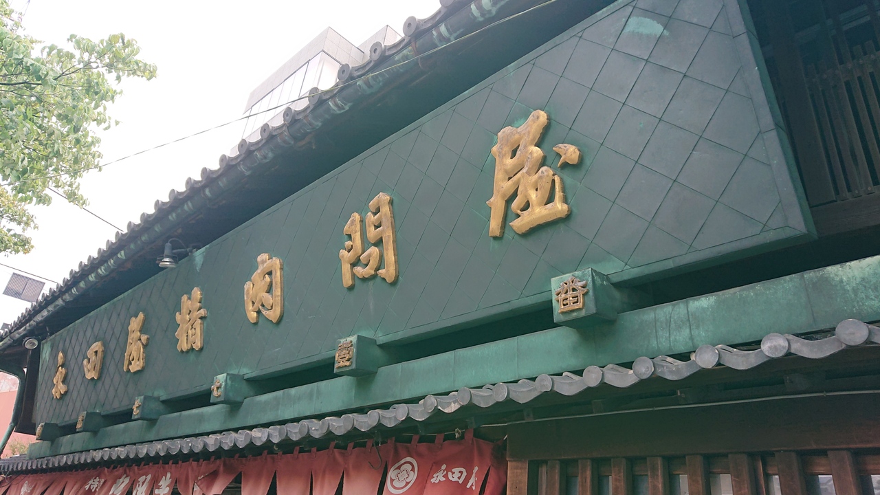 伝馬通り付近の、立派な店構えのお肉屋さん