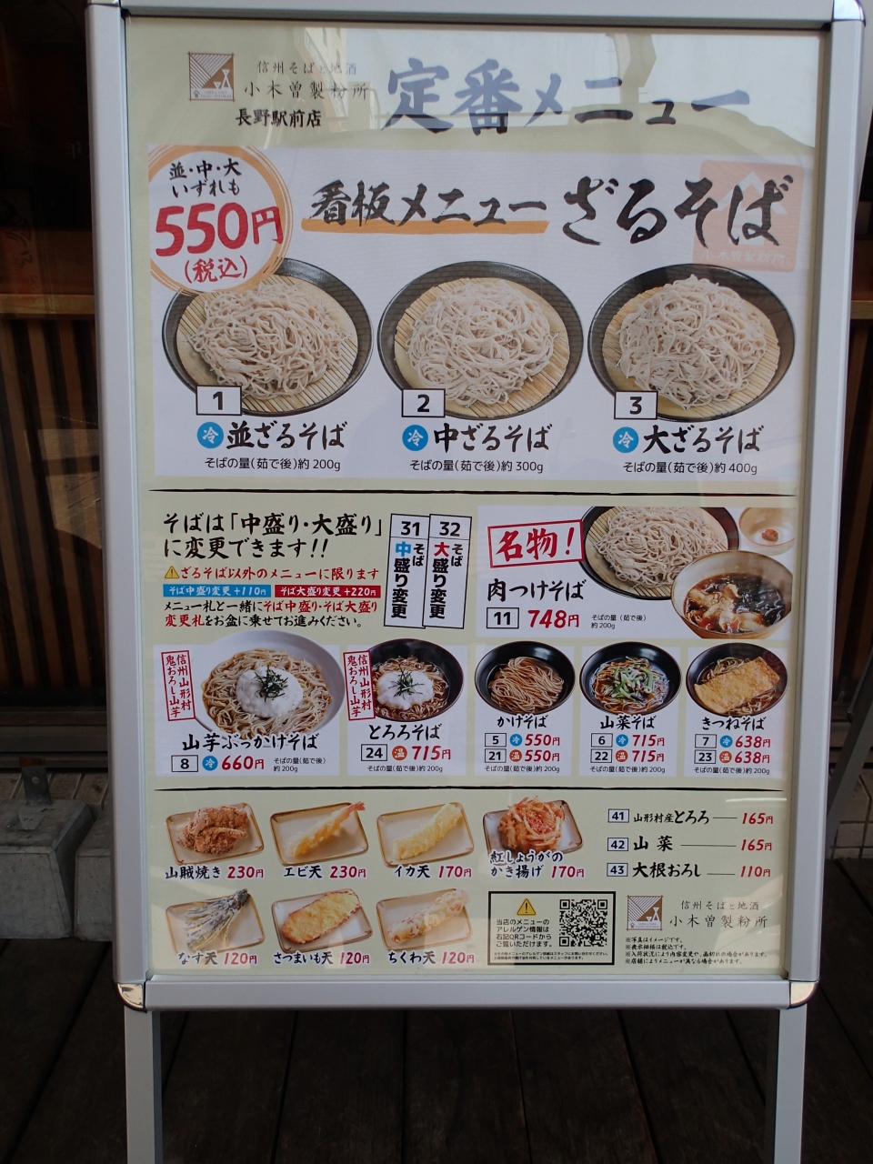おそばは、中盛り、大盛ともに並盛料金と同じでいただけます。