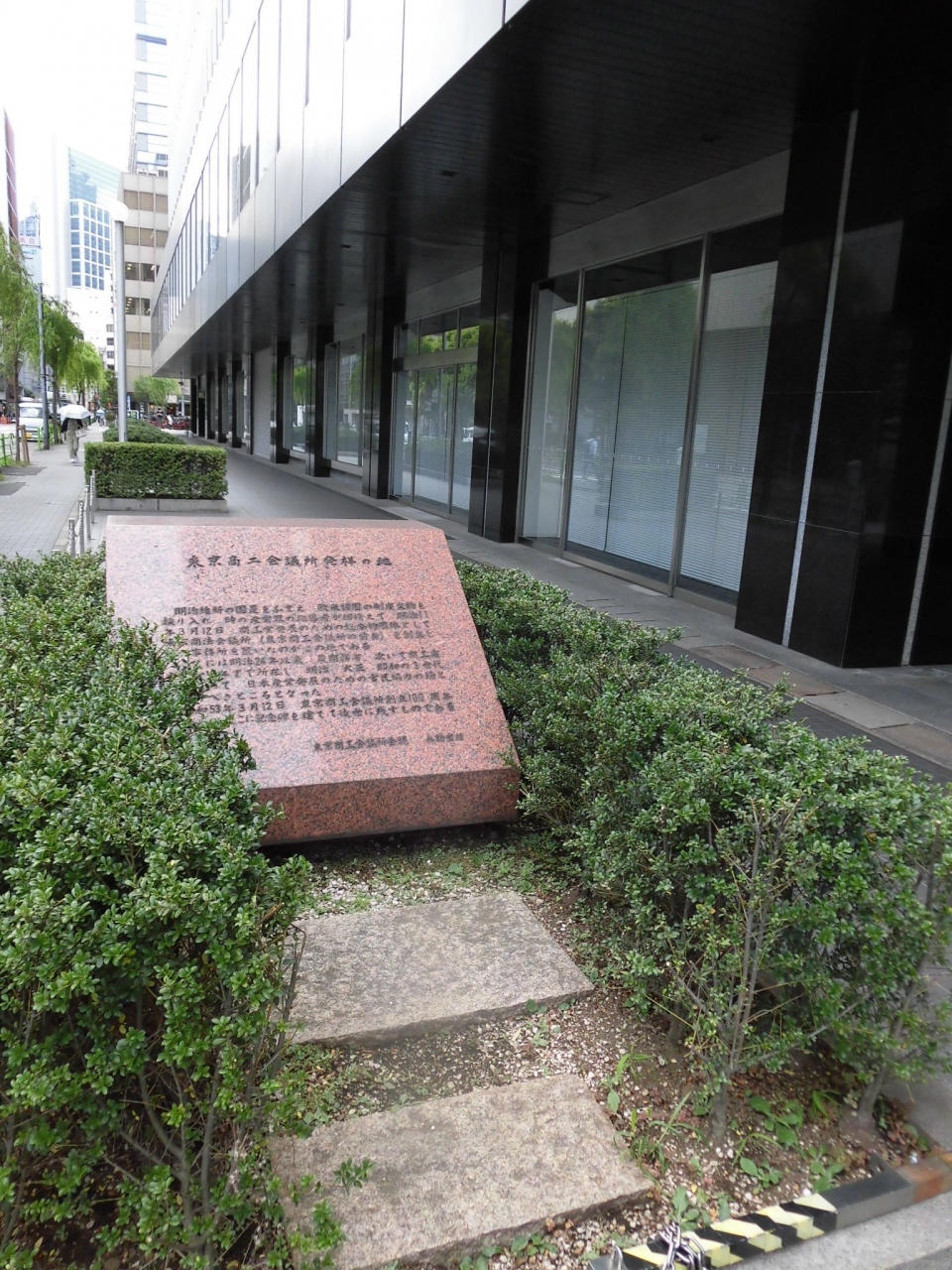 東銀座の新橋演舞場近くを散策途中で、ビルの植え込みの中に石碑がありました。明治時代に東京商工会議所の事務所があった場所でした。当時の経済を発展させた施設が、銀座にあったとは思いもよりませんでした。立派な石碑ですが、あまり知られていないような気がしました。