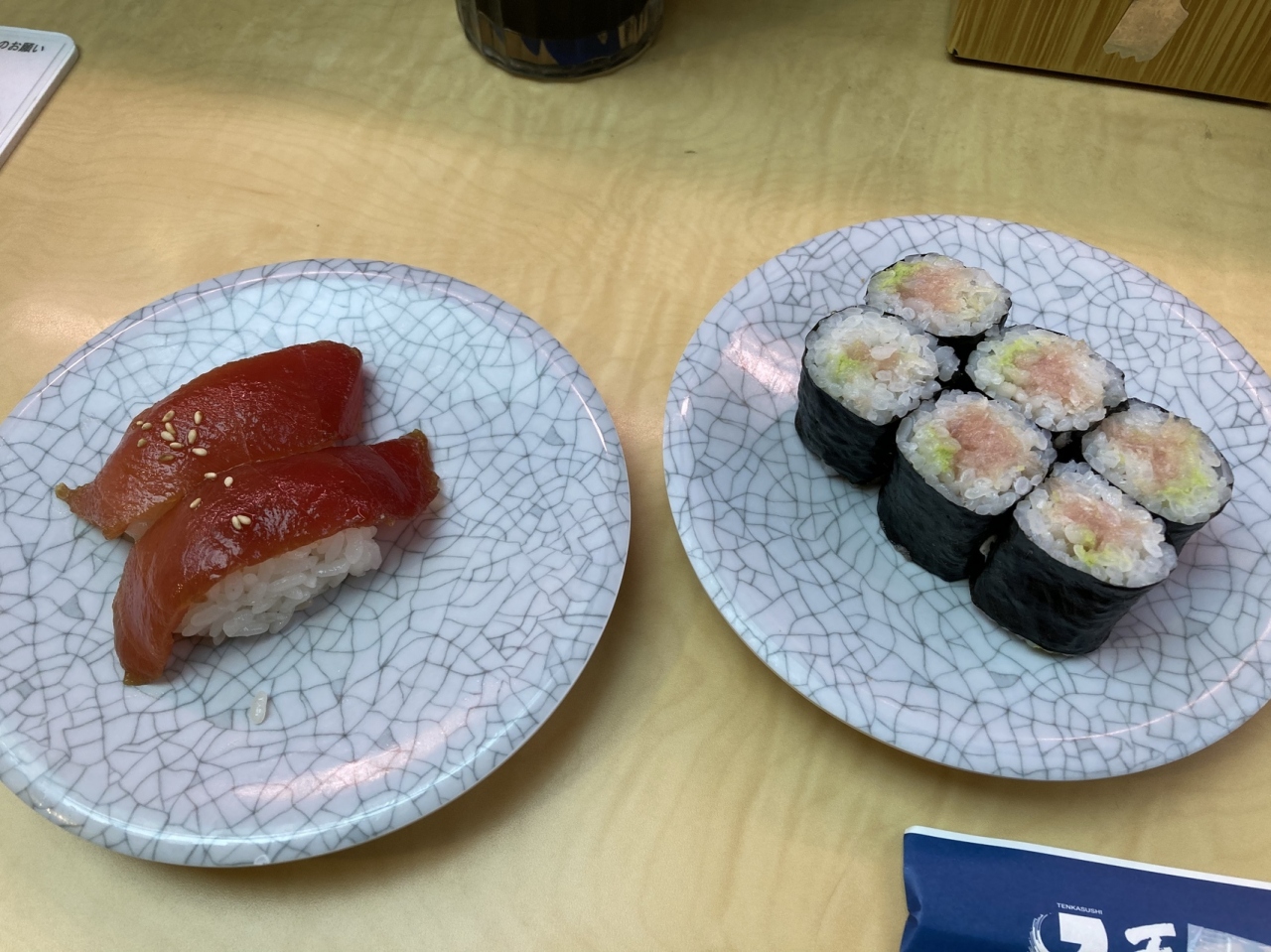 一皿130円~で、漬けマグロやアワビ(チリ産)が130円なのは嬉しい。築地から仕入れたというネタは悪くない。一方で、温かいシャリにこだわるため、シャリが少し崩れやすい。暑い日、雨の日、寒い日、雪の日は、一部の190円のネタが130円になる他、20時半から「ラスト3カンサービス」で閉店までの1時間、2種類のネタが1皿3カンになる。自分が訪問した日は、ビントロとアジが3カンでお得でした。また、味噌汁半額になるのでこれも嬉しい。シャリは少し大きめ。「シャリ小」を頼んでいるお客さんも多くいました。