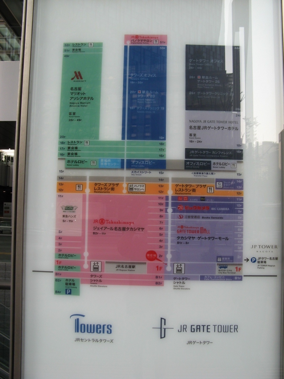 JR名古屋駅に直結している高層ビルです。中にはホテル、百貨店、ビックカメラ、オフィスなどが入っています。15階から21階に入っている名古屋JRゲートタワーホテルを利用しましたが、眺めがいいし、朝食バイキングも内容が良かったです。