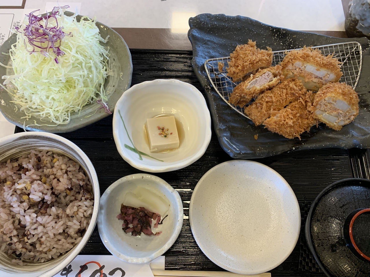 とんかつ、エビフライは安定のおいしさです。しじみ汁、キャベツ、御飯のお代わりは何回も自由でお腹いっぱいになります。いつも混んでいて、並んでいることもしばしばです。ここのを食べると他のとんかつは食べれません。御飯は白米と五穀米から選べます。持ち帰りも出来ます。早めに注文して時間を指定しないと混んでるので間に合わないことがあります。
