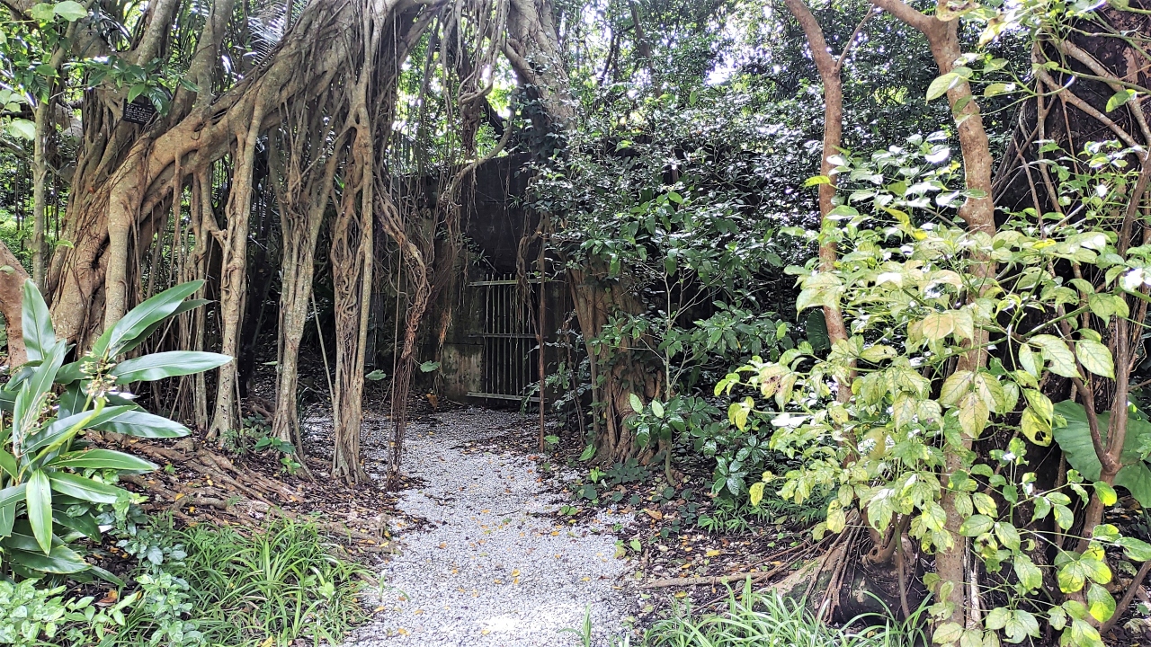 龍潭池から龍淵橋を越えるとすぐ右手の鬱蒼とした中にに案内板が見え、その奥に壕の入り口だけが残されています。陸軍の第32軍司令部跡だそうです。首里城下を通り金城道までつながった全長1kmほどもあった壕。豊見城の海軍壕公園のように整備されると良いですね。