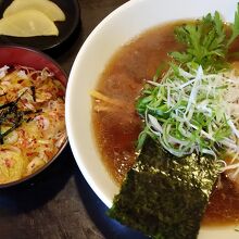 札幌では珍しく、あっさりしょうゆで勝負するお店。鶏塩も有りますが、みそは季節限定。カウンター6席だけの小さなお店。お客の回転は早いです。小腹満たしに丁度良い。ねぎめしは、とうがらしたっぷりネギにニンニク加えた滾るお品。