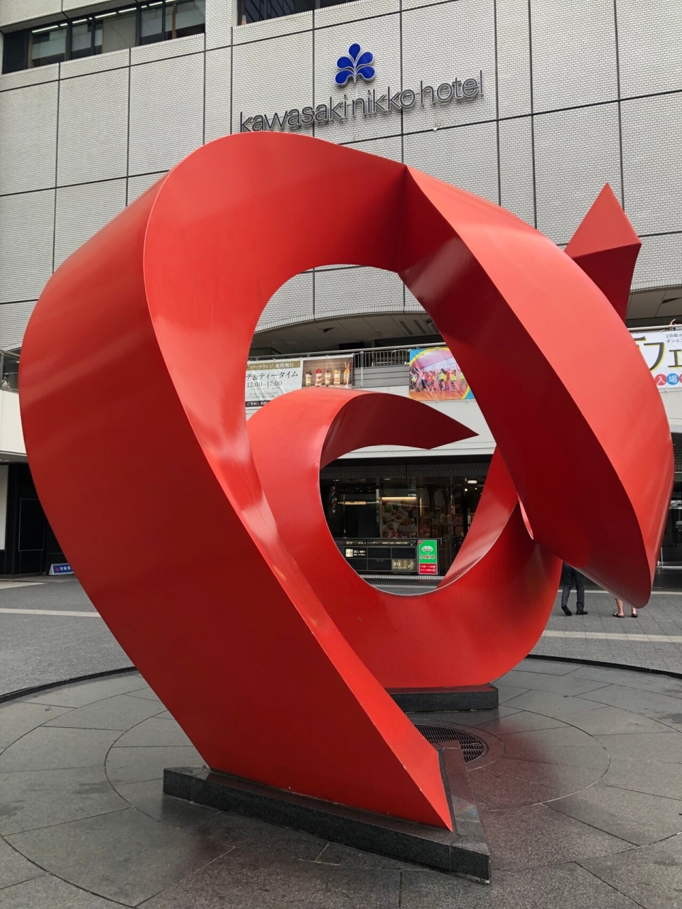 川崎駅前にある赤い浮きというオブジェで、1984年からここにあるそうです。私の生まれた年とさほど変わらないんだなぁと思いつつ鑑賞しました。