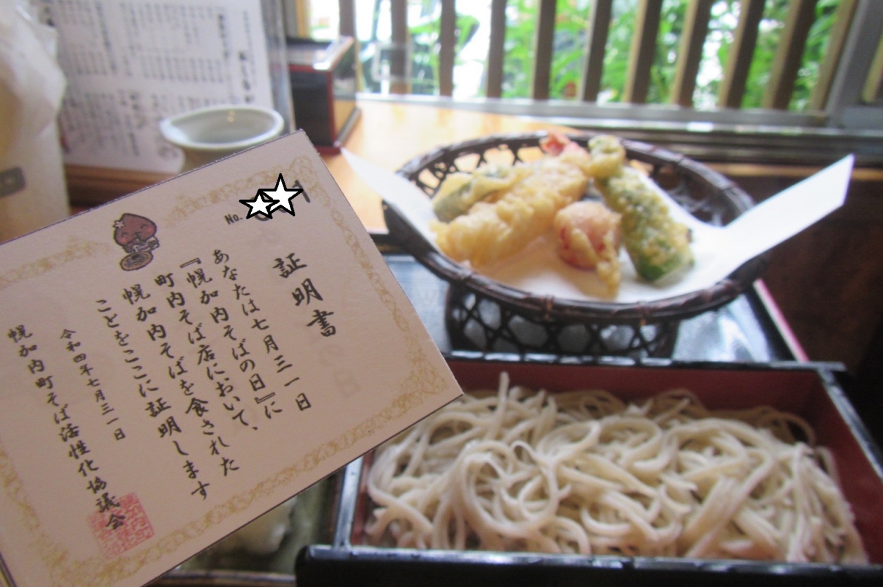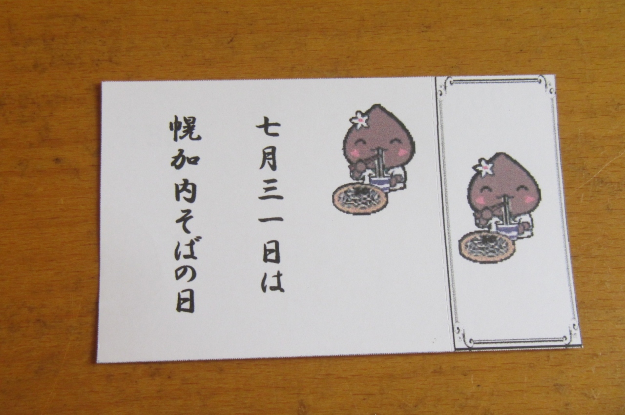 7月31日は幌加内町の「そばの日」で、幌加内のそば店各店(雪月花、霧立亭、あじよし食堂、そしてここ、八右ヱ門)が蕎麦\300円引きでした(2022年)。\300円引きの適用には、小さなカードに記名し、それをお会計時に提出します。
