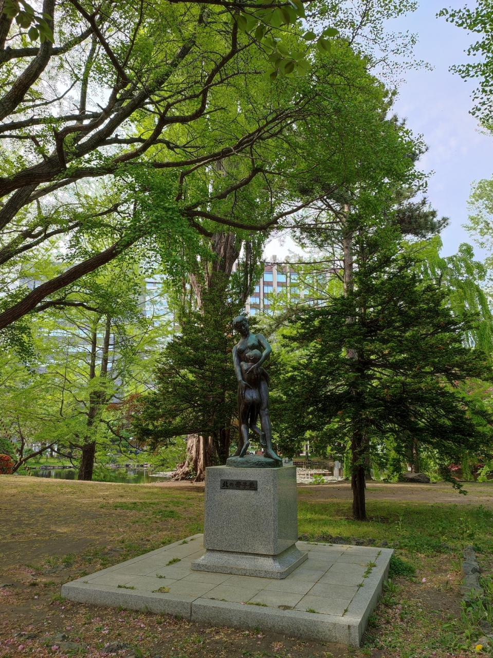市街地のアクセスのいい場所にあるので、北海道庁赤れんが庁舎には札幌に来るたびに散歩がてら寄るのですが、前庭にあるこちらの像は初めて気が付きました。慈愛というよりもたくましさや力強さを感じる母親の像でした。