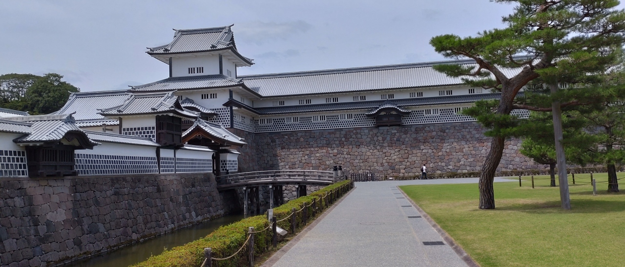 加賀百万石前田家の居城した跡地で、石川県金沢市を代表する観光地です。公園内は広く緑豊かで散策に楽しいところです。無料で入れます。「石川門」「三十間長屋」は江戸時代からの建築物で 国の重要文化財に指定されています。 2001年に復元された「菱櫓・五十間長屋・橋爪門続櫓・橋爪門」は有料ですが、当時のすばらしい建築技術を知ることができます。辰巳用水を使った池泉回遊式の「玉泉院丸庭園」も見ごたえがあります。