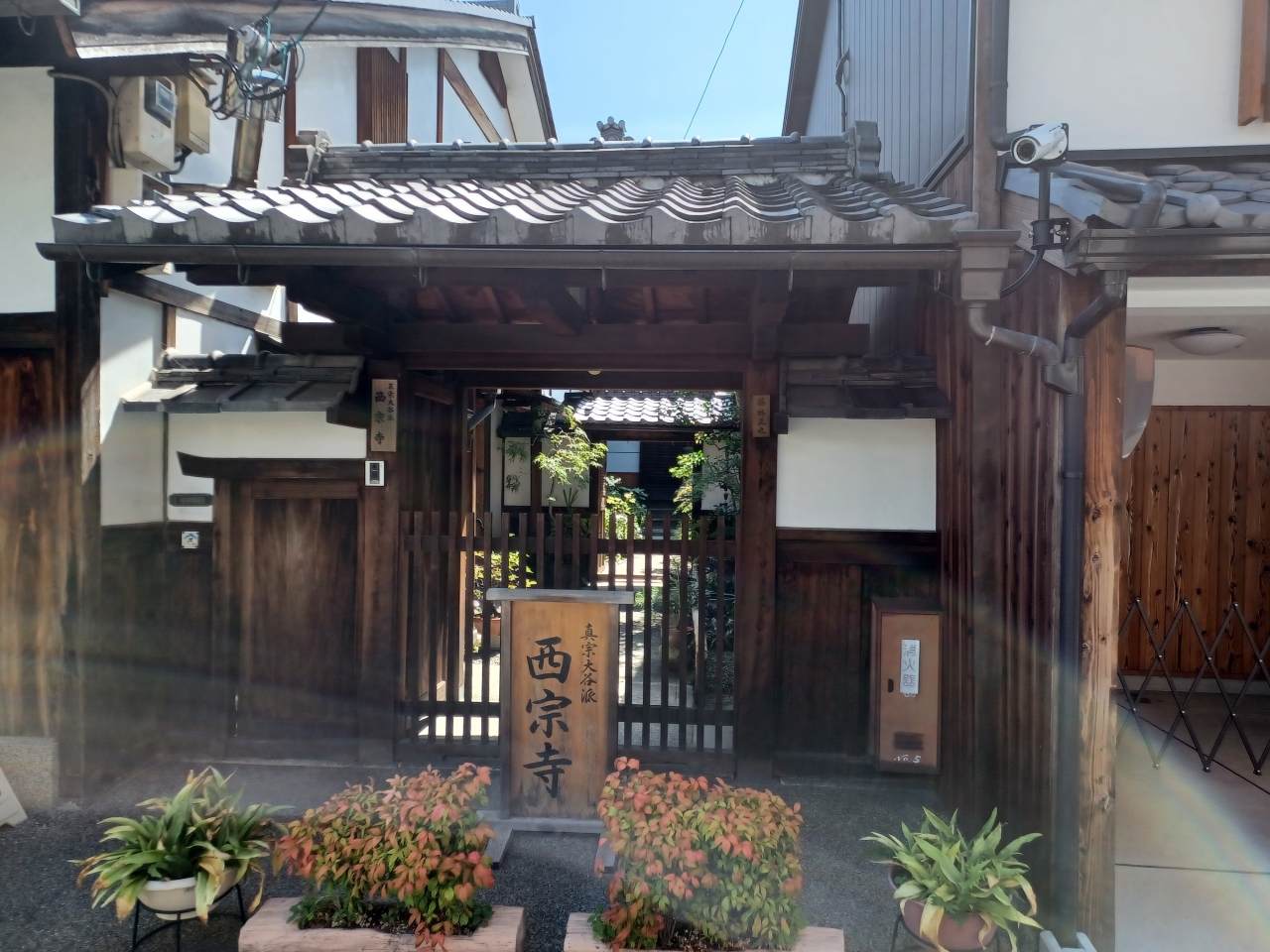 渉成園から北に少し行ったところにある浄土真宗大谷派の寺院です。近くに本山東本願寺があるので、ちょっと期待したのですが、結界柵が張られていました。観光寺院では無いようですが、立派な看板が置いてあり、山門もなかなかのものでした。