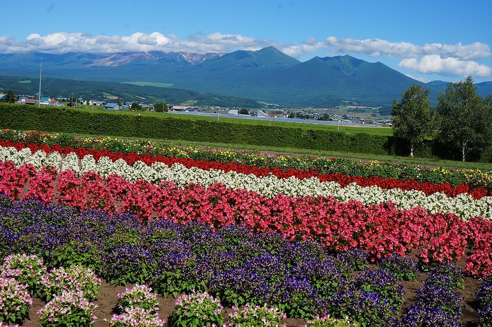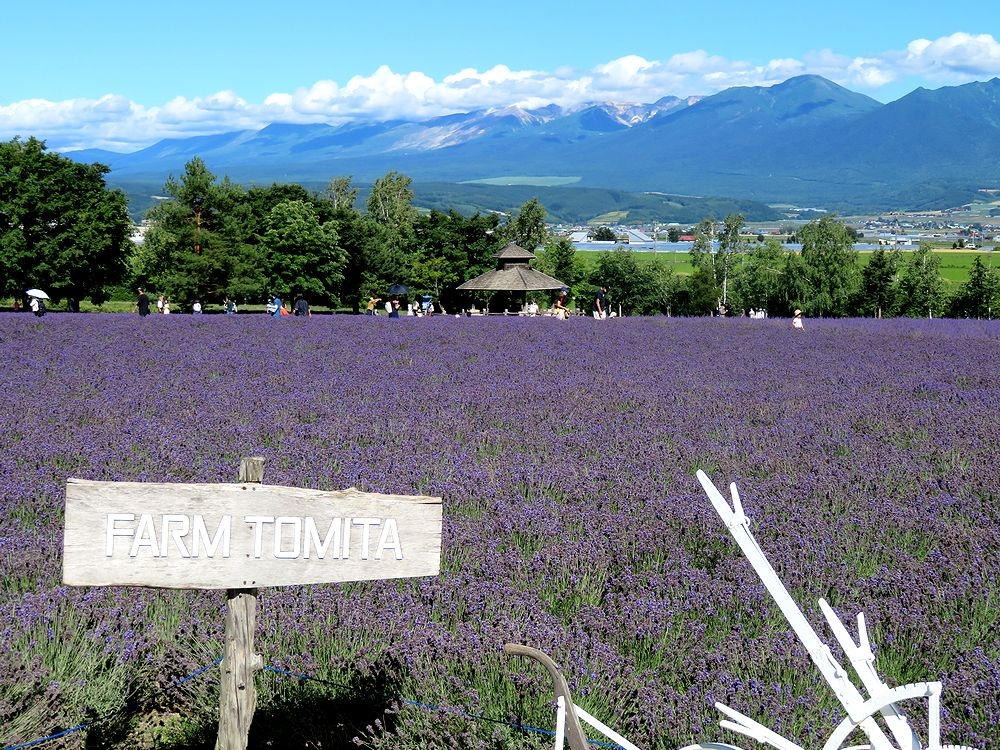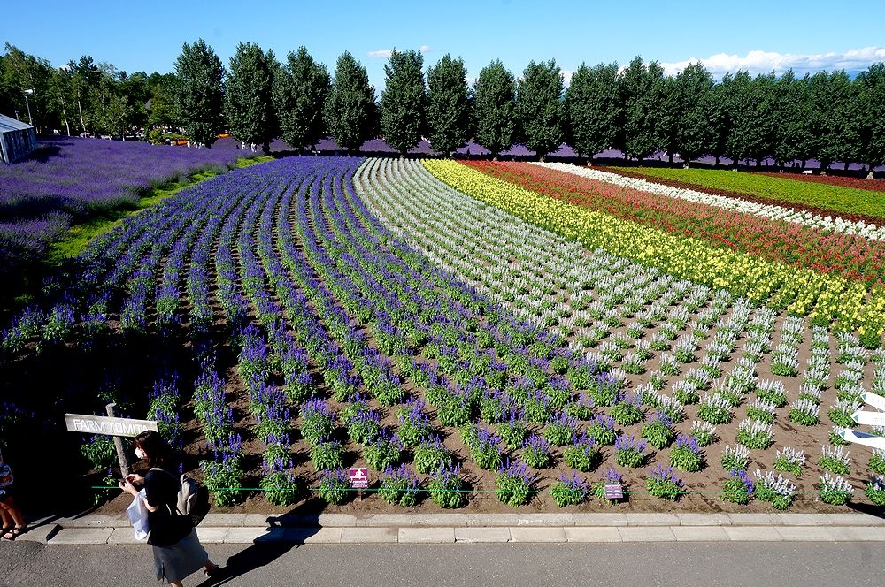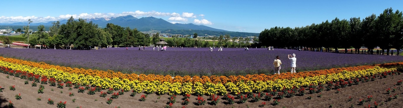 前回訪問した時はラベンダーが終わりかけていたので、今年2022年7月21日に再び訪れたところ、ちょうどラベンダーをはじめ夏の花が見ごろでした。午後2時半ごろ訪れたせいか無料の駐車場には空きがあり、すんなり停められました。一番素晴らしい彩りの畑はメインの場所から道路を渡った奥の方にあるので、絶対見逃さずに訪れてほしいところです。私達は前回見逃しており、今回も見逃してしまいそうでした。高いところからは大雪山連峰がきれいに見え素晴らしかったです。フランスのプロヴァンス地方のラベンダーファームに比べ規模には負けますが、彩りや色の配置などは繊細でひけをとらないと感じました。