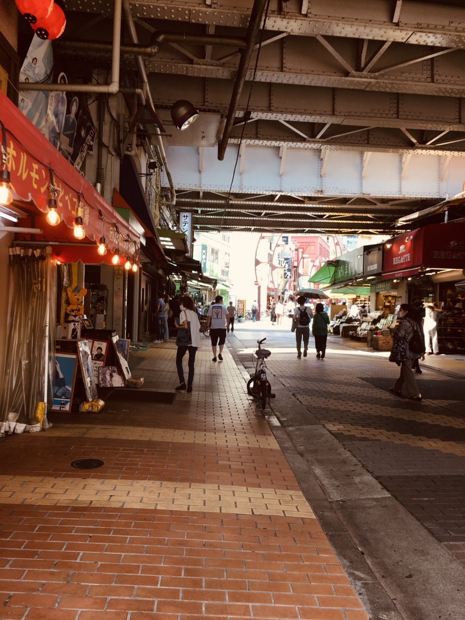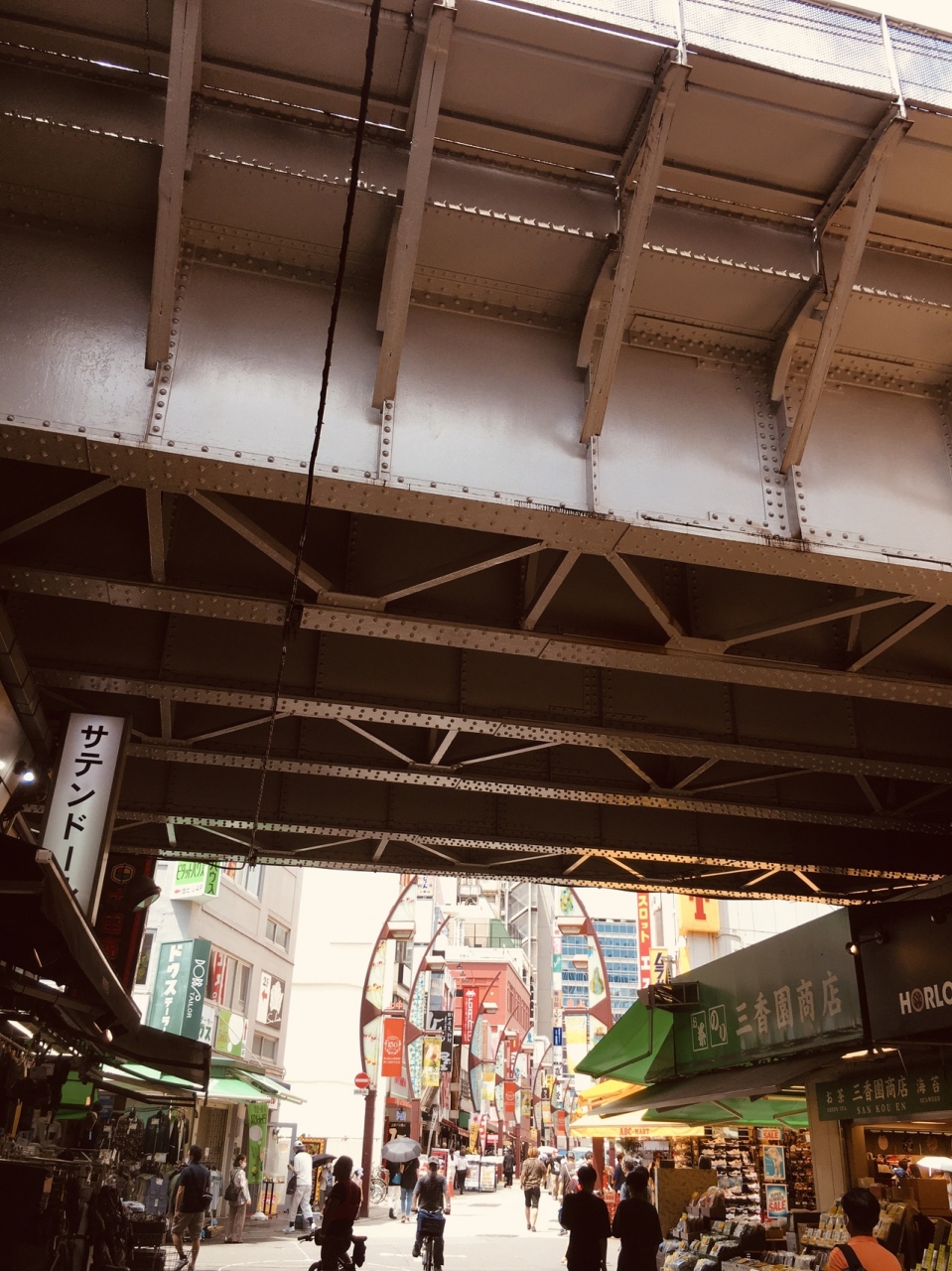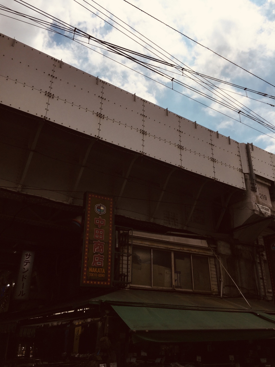 かなりの本数で電車が通る走っていますが、アメヤ横丁の中心部にあるため、人の雑踏と店がひしめき合っているので電車の音も全く気にならなかったです。鉄筋丸出しの橋で、橋の下に橋たくさんの店があり賑わっていました。