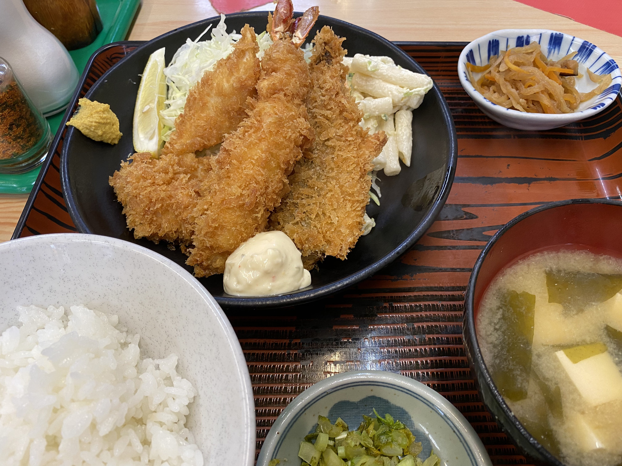 成増にある老舗の定食屋さんです。久々に訪問しました。そして久々のミックスフライ定食。いやー、やっぱりこれが黄金メニューですね!なんといっても海老フライが美味い。イカフライ、アジフライと違った味を楽しめるのも魅力。次は何を頼もうかな。