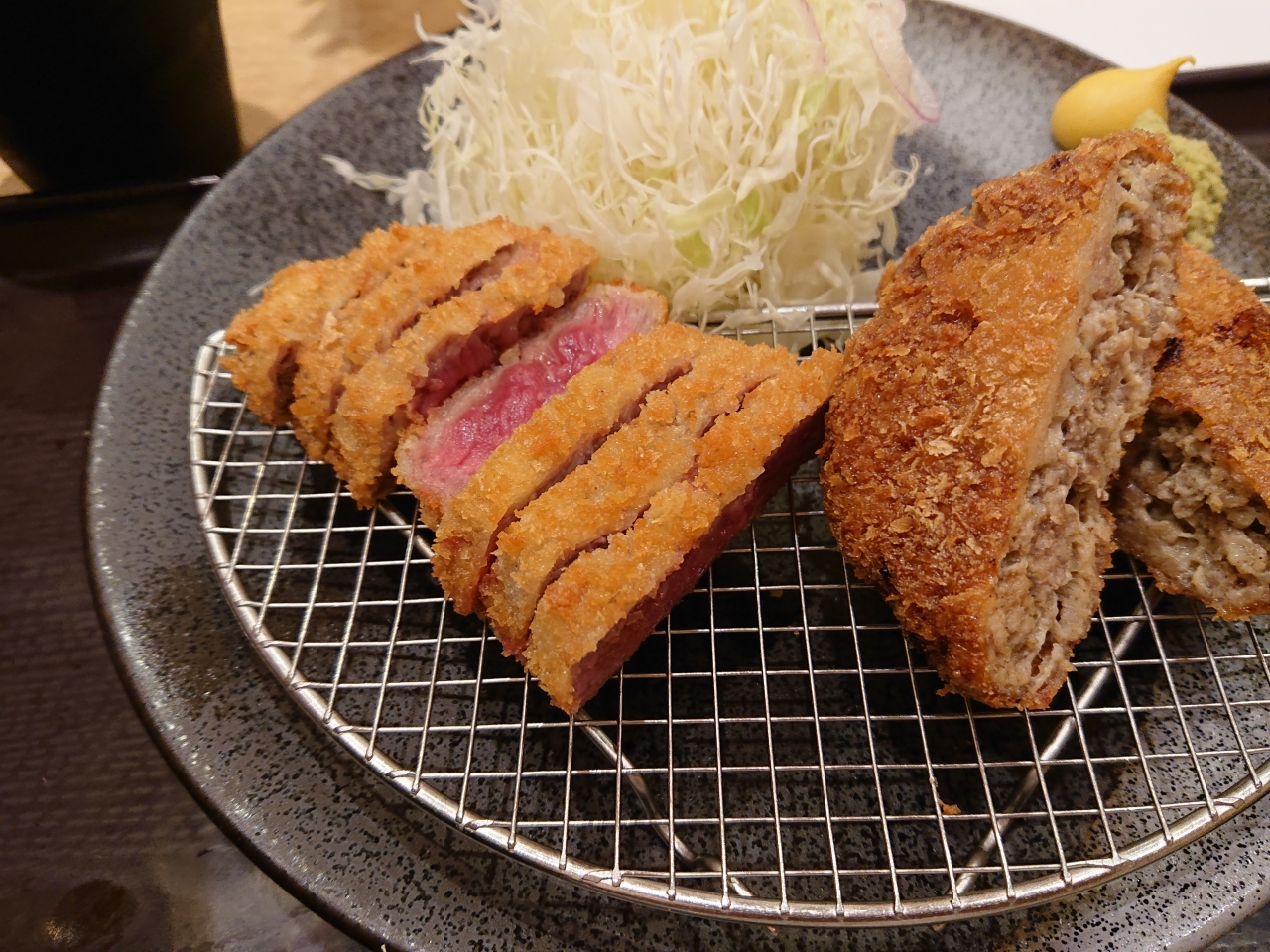 ランチメニューの牛カツメンチカツ御膳990円(税別)をオーダー。