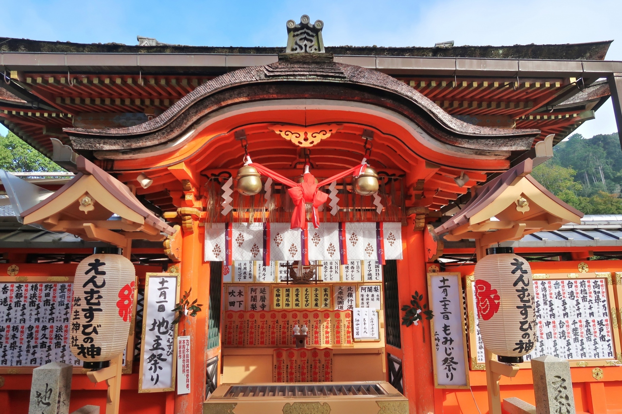 打ち出の小槌を高く掲げた縁結びの神様、大国主命と、紙垂を持って二本足で立ち上がっている赤い目のウサギが出迎えてくれる、縄文時代から続く世界遺産の神社です。