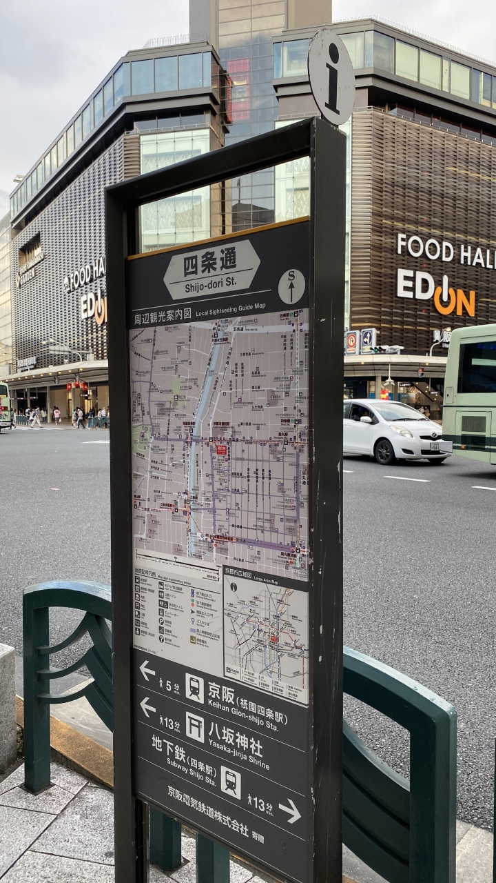 京都の繁華街の四条通。大丸、島屋といった大型店からゑり善のような老舗までなんでもあるのもうれしいところ。交通の要衝でもあるのですが、道の幅よりも車やバスの混雑がひどいので、いつでも混雑しているのも事実です。