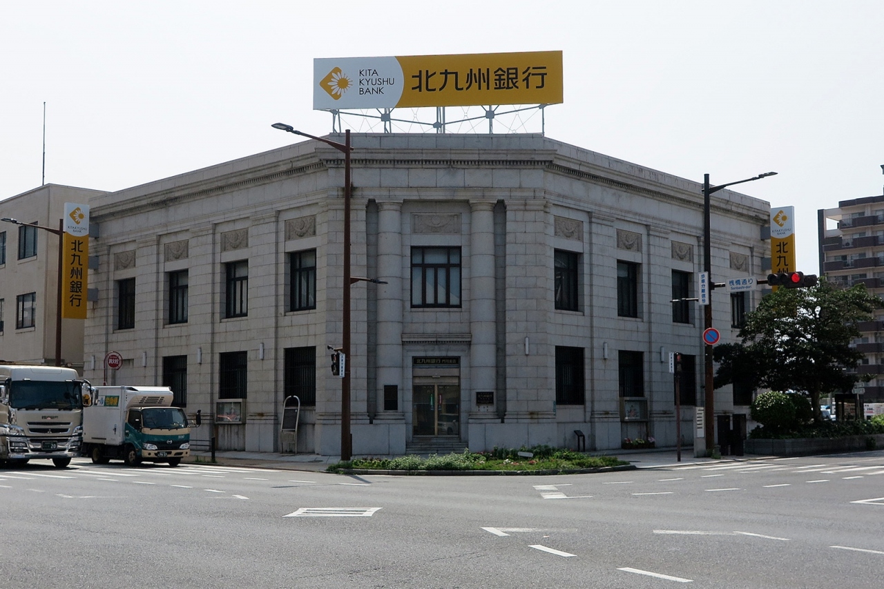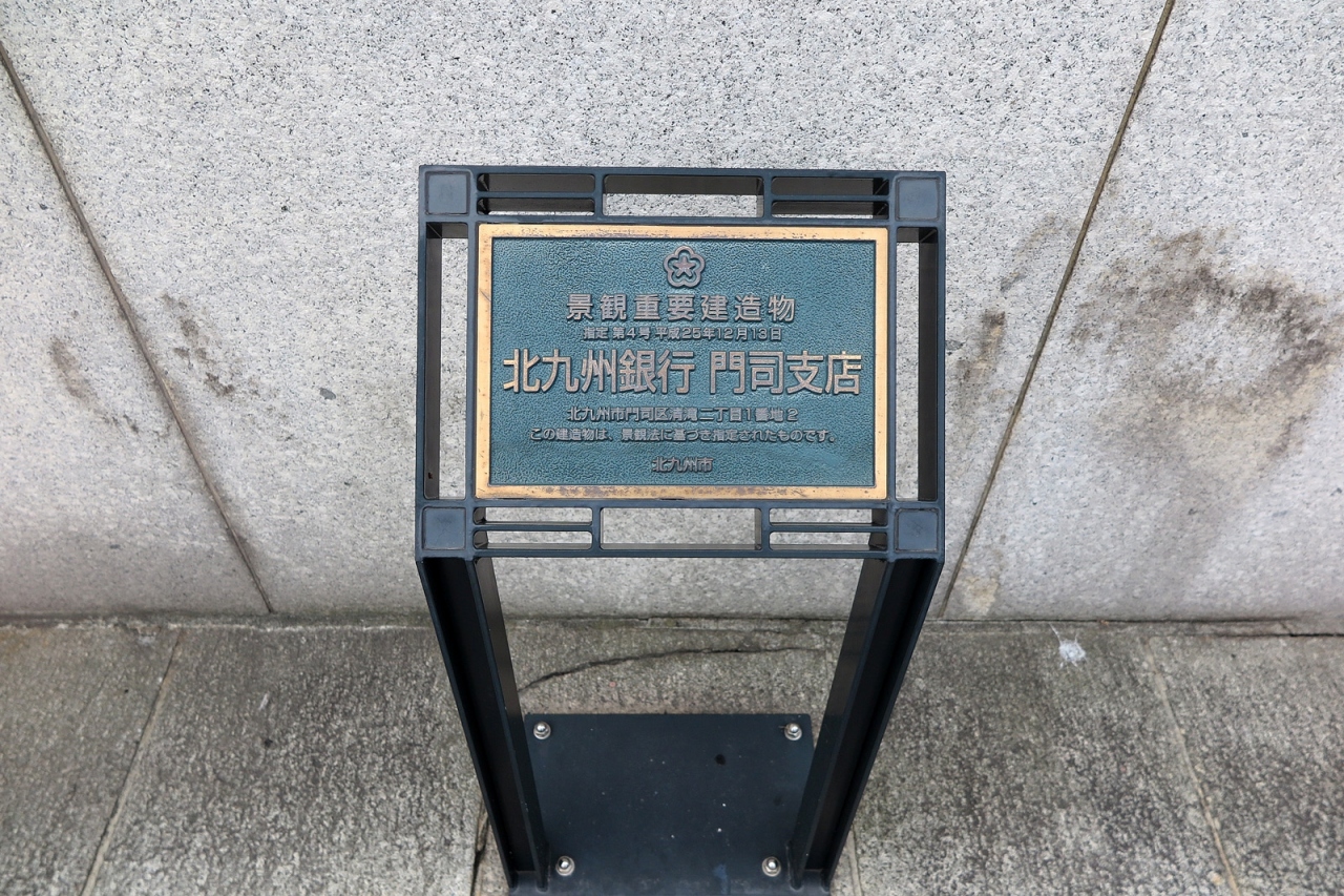「桟橋通り」と「旧日銀通り」の交差点にあった近代建築です。現在北九州銀行の店舗になっていますが、元は昭和9(1934)年竣工の「旧横浜正金銀行門司支店」とありました。横浜正金銀行といえば外国為替銀行ですから、門司港が外国との取引額の大きい経済的な重要拠点であったことの証ですね。歴史が分かります。