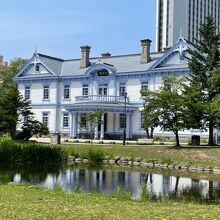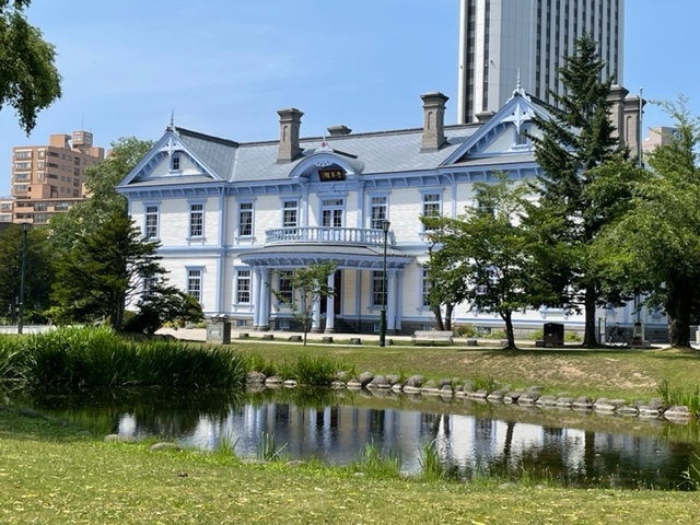 中島公園内の西側にある、白とブルーが印象的な建物です。1880年に開拓史が建設したホテルで、明治・大正・昭和天皇も宿泊されました。現存する木造ホテルとしては国内最古で、重要文化財に指定されています。中島公園に移築された後は結婚式場として利用され、現在は交流施設となっています。有料ですが、館内の見学もできます。天皇陛下が宿泊された時に使用した品々などが展示されていて興味深かったです。