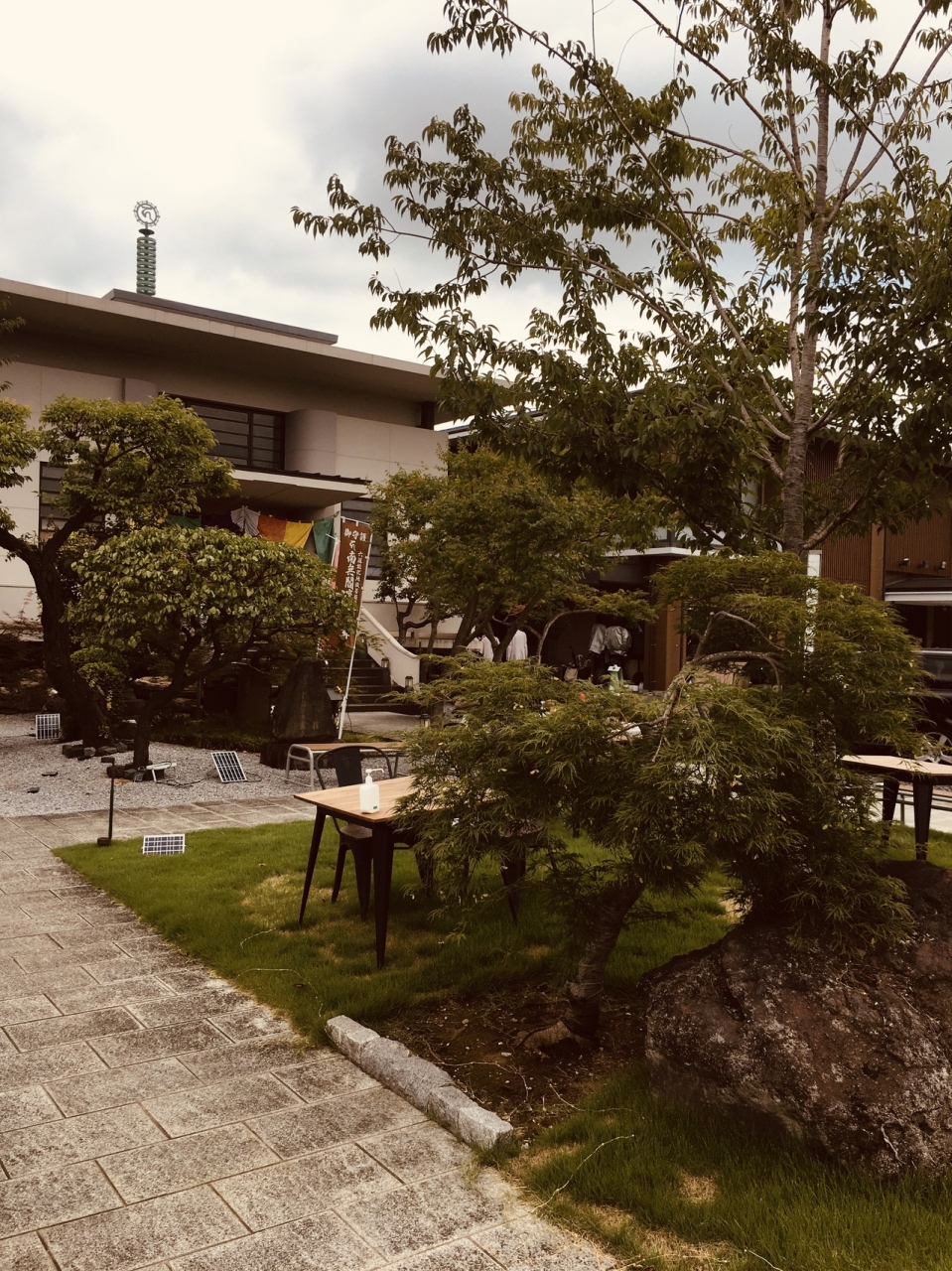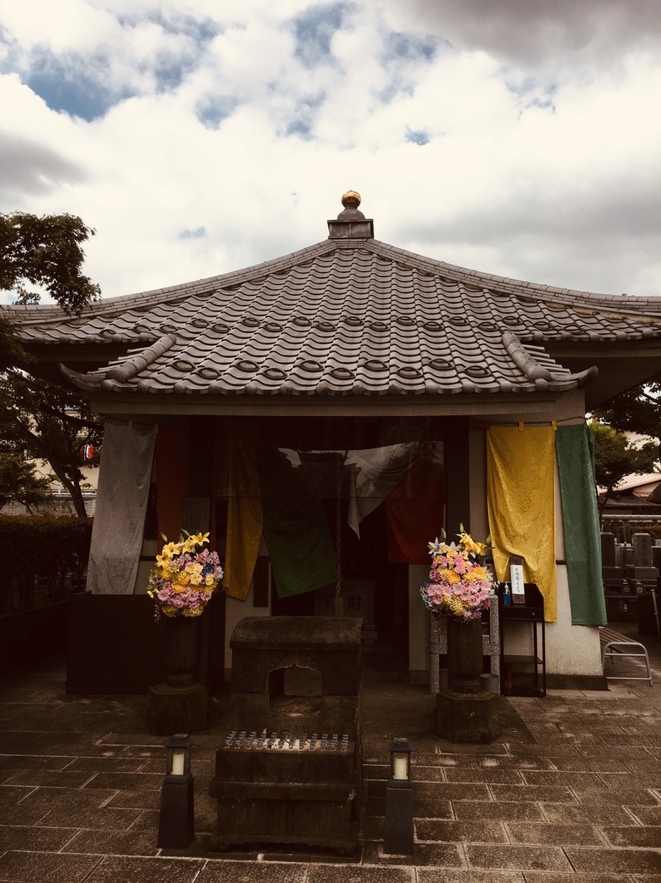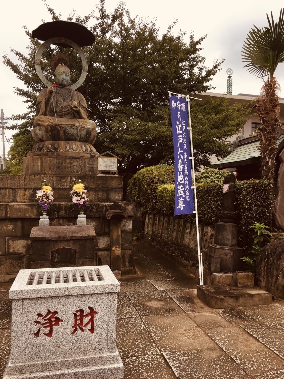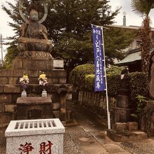 幹線道路沿いの門前を潜ると左側には年季が入ったお地蔵さまがたくさん並んでいました。お墓のエリアは奥で、本堂は近代的なコンクリート造りの2階建てでした。庭も整備されていて、青銅の大きなお地蔵さんもありました。