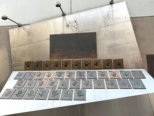 1998年に日本シリーズを制して日本一になった横浜ベイスターズの記念モニュメントです。題して「煌(きらめき)」。40人ぶんの選手らの手形とサインが並んでいます。悲しいかな、20年超の経年劣化で、その煌めきは鈍っている感じです。この優勝を記念して関内仲通りが「ベイスターズ通り」と改称されているんですね。