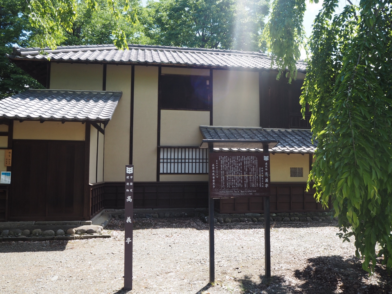 松代観光案内所から南へと10分ほど歩いた場所に高義亭はあります。象山神社の境内の中の社殿のすぐの斜め前の場所です。海外渡航禁止などで藩から蟄居を命じられて、住んでいた家が高義亭です。ただ人とも交流は許されていたようで、有名な幕末の志士などが訪れて議論などをしていたようです。家は閉ざされていて、外観の見学のみです。