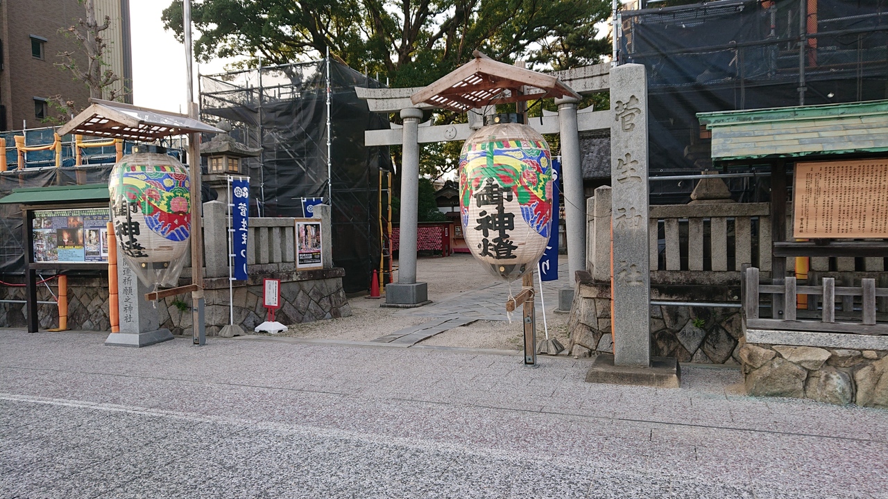 8月上旬の平日夕方の午後6時台に訪問しました。ちょうど奉納花火大会に近い時期ということもあり、鳥居の前付近には、提灯が設置されていました。その提灯は、図柄は大変華やかで、大きさもかなりのもの。見応えがあり、印象に残りました。