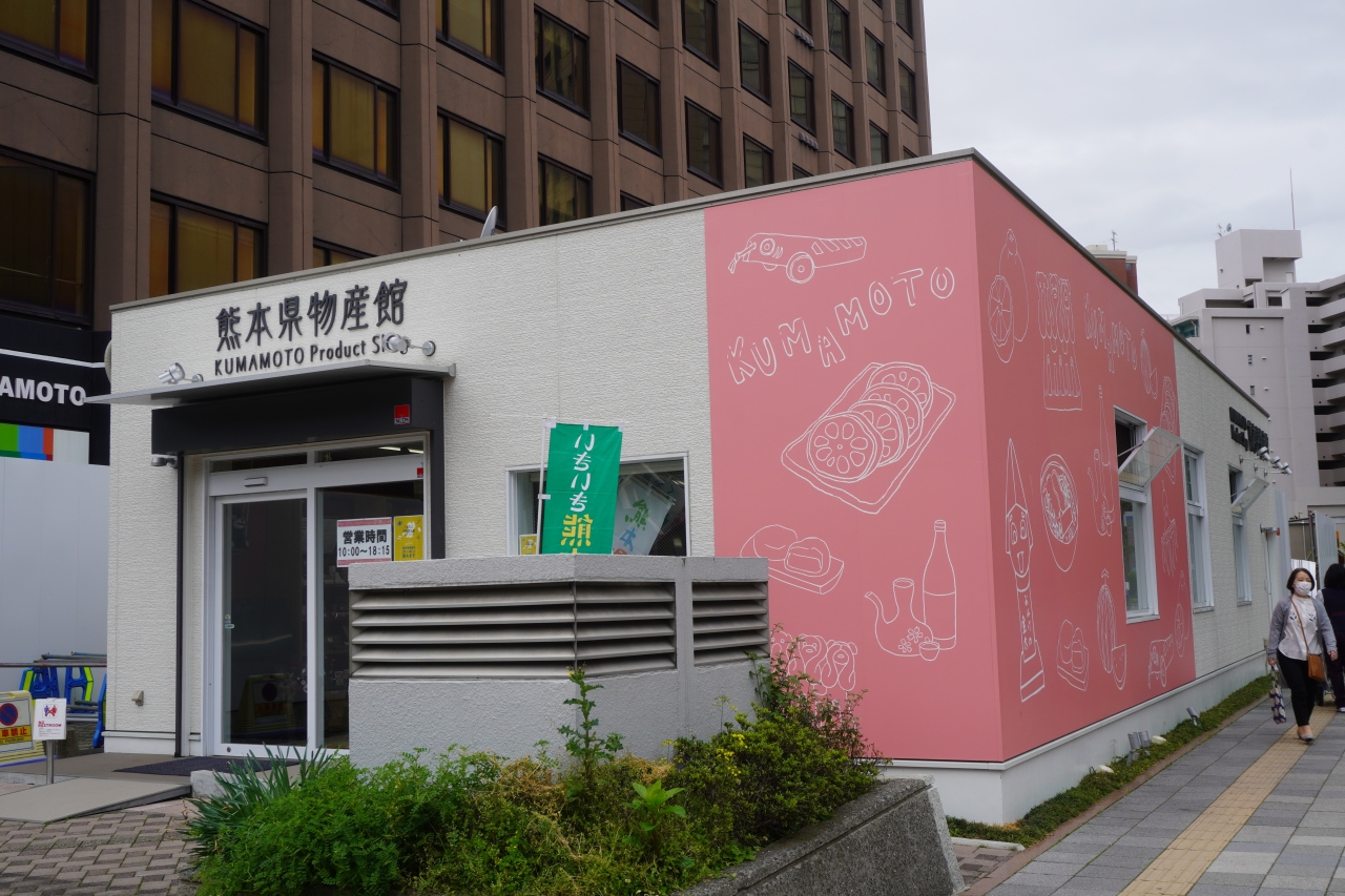 熊本県物産館は、この時期、仮設店舗で営業をしていました。伝統工芸品や辛子蓮根、球磨焼酎とか地元の名産品が揃いますが、目立っていたのはくまモングッズかな。文房具とか小物の商品があって、もうすっかり熊本のお土産になっています。