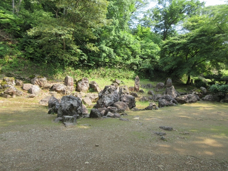 朝倉氏遺跡を散策して、朝倉館跡庭園を見下ろすように少し高台のコースを歩いて行くと、湯殿跡庭園がありました。石の庭園で枯山水かと思ったら、造られた戦国時代は水があったことがわかっています。どうして湯殿跡というのかはわかっていないそうです。