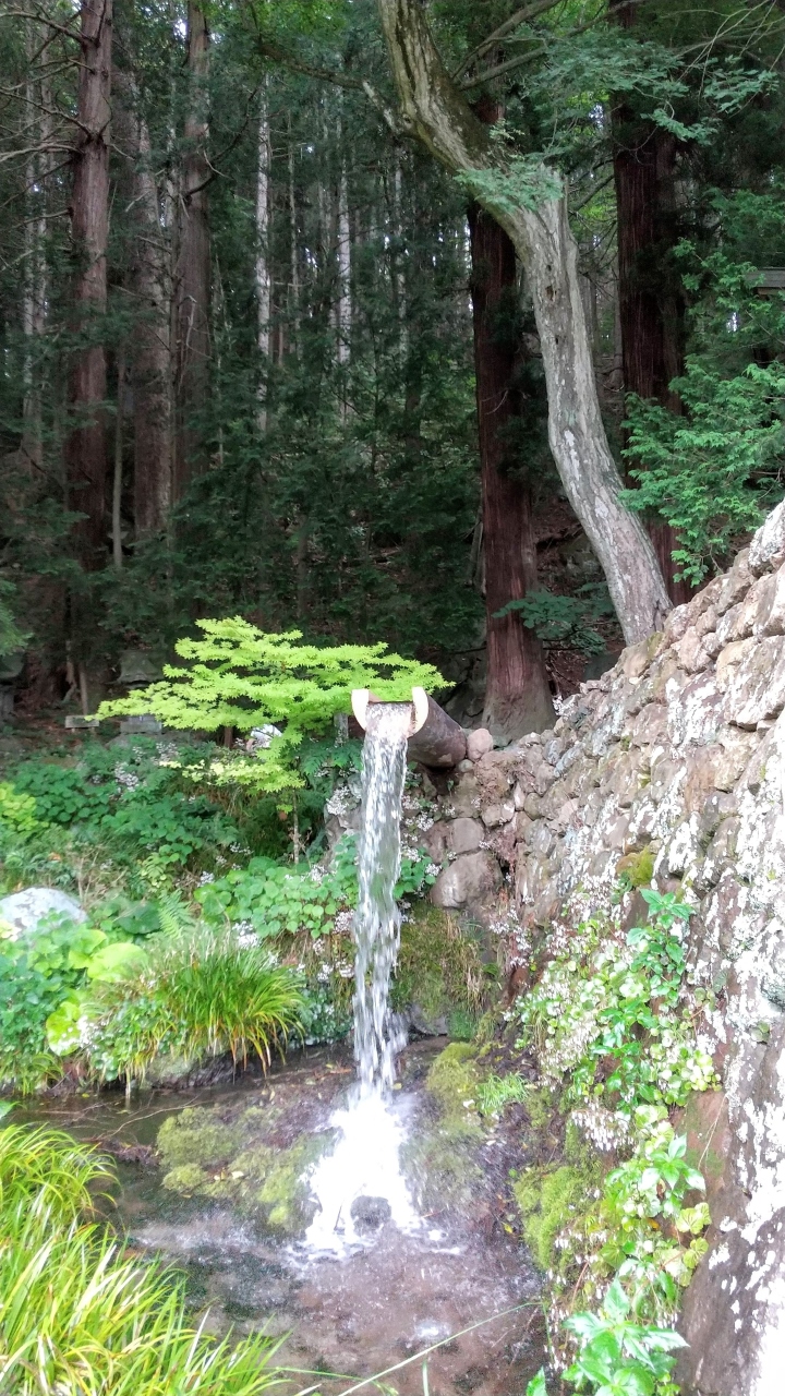 豊かな湧き水が流れ、その水を利用したワサビ栽培、釣り堀(行ったときは休業中でした)があります。大滝神社の敷地内なので、まず神社にお参りしたい。