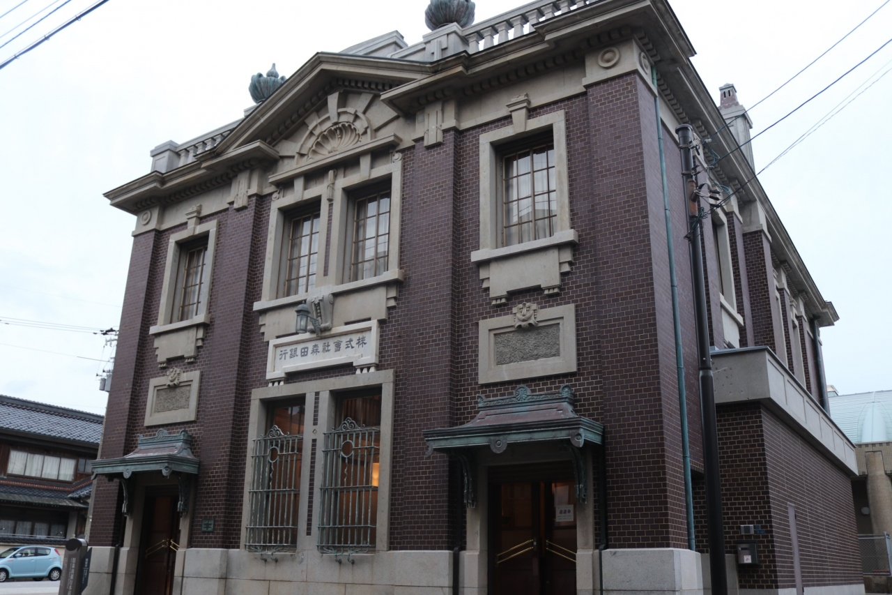 三国の町の中にあります。北前船の廻船業者であった森田家当主の森田三郎右衛門によって設立された個人経営である森田銀行の本店建物です。その後は福井銀行の支店として使われていたそうです。現在は館内が公開され、銀行営業時のまま保存されています。吹き抜けで2階には回廊が設けれています。