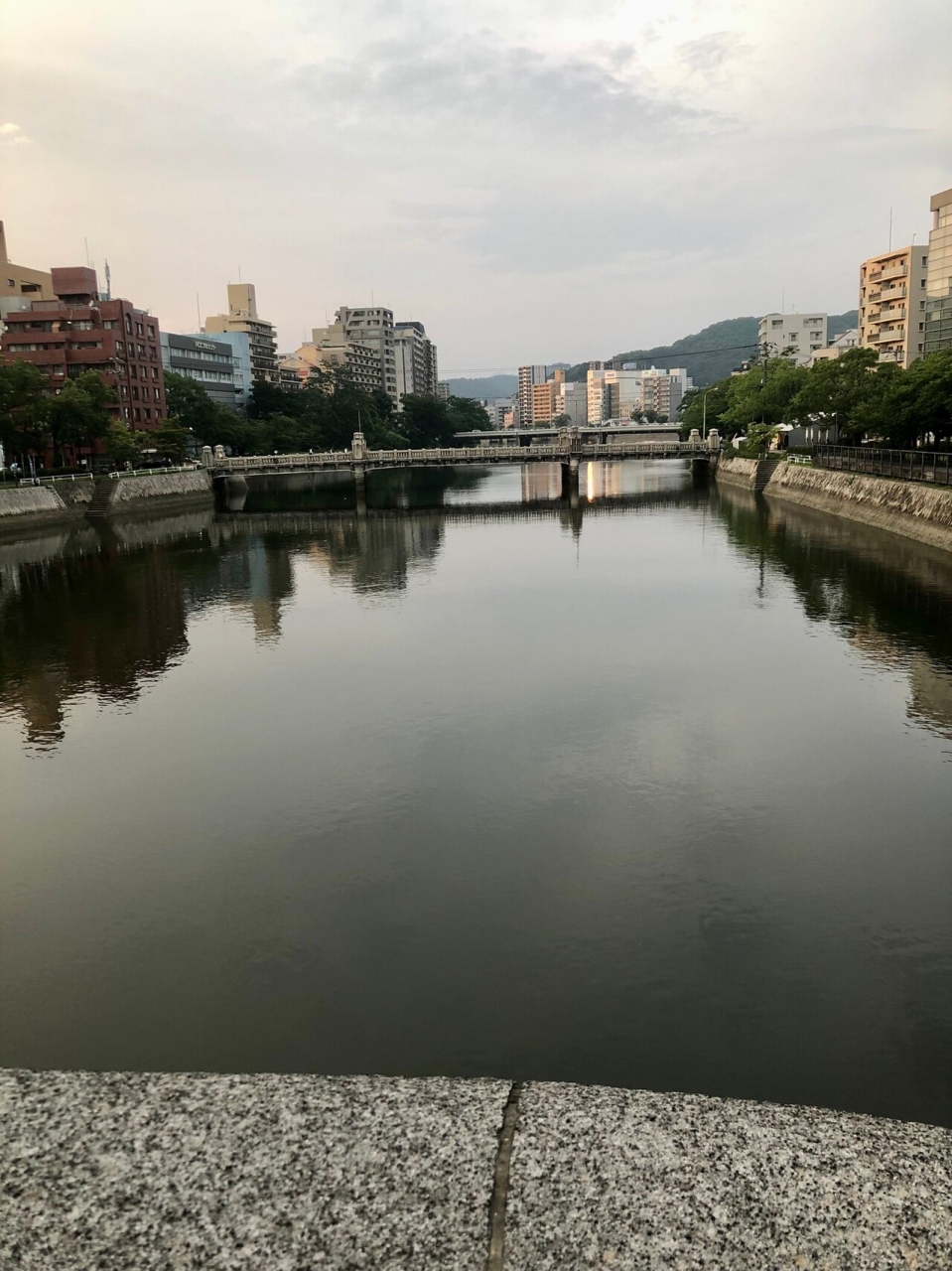 広島は川の多い街ですが、こちらは旧太田川から分岐してきた京橋川という川です。この川がさらに京橋川と猿猴川というふうに分岐して海に注いでいきます。