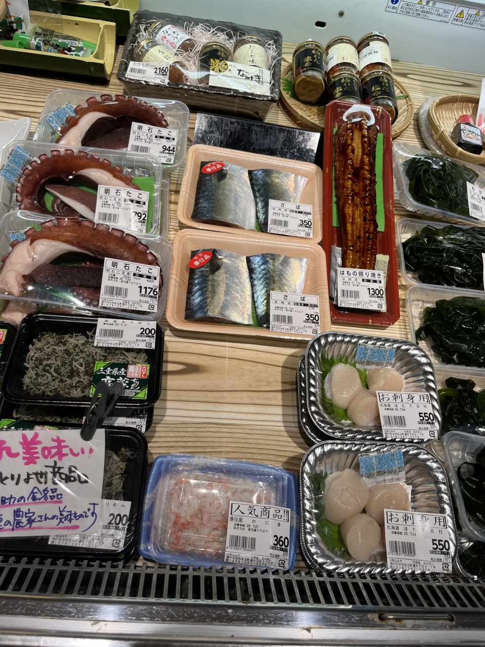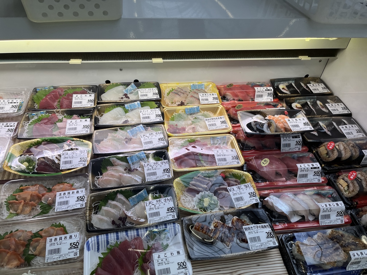 店内には お造り・握り・盛り合わせ などが並び…美味しそう〜