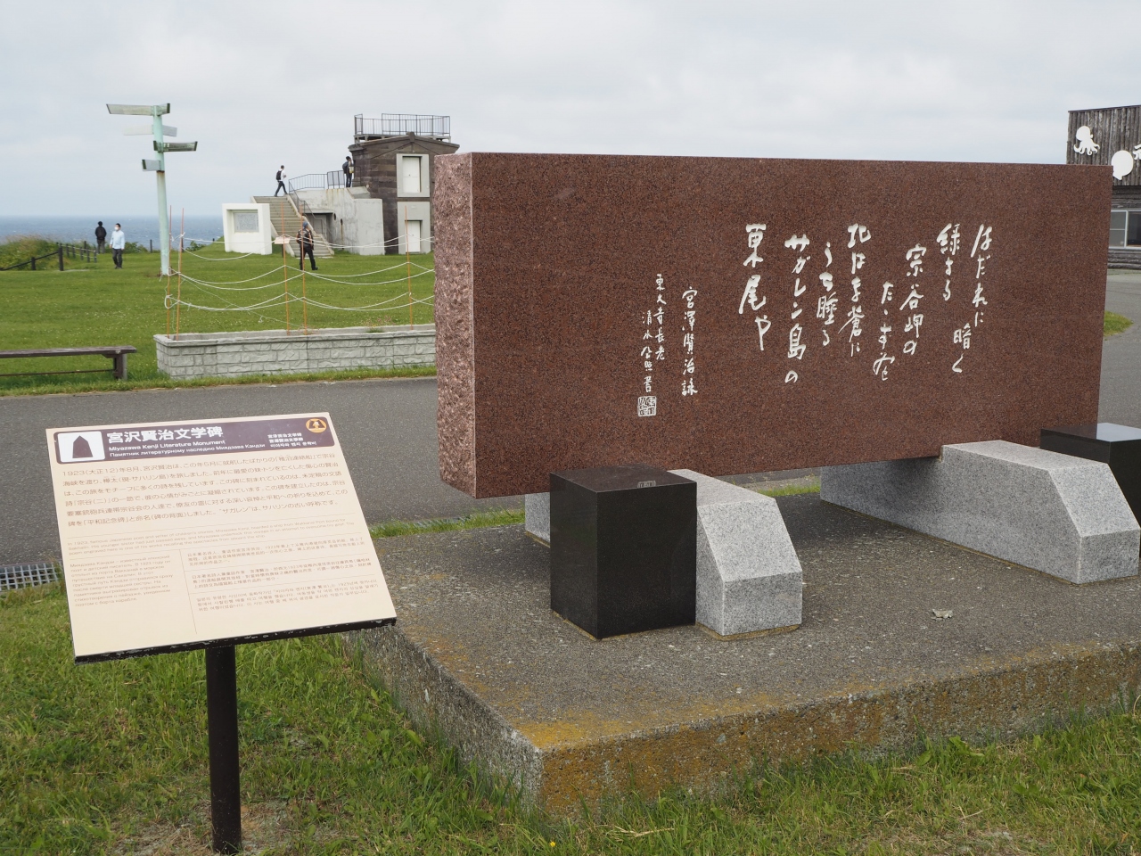 宗谷岬のすぐ南側にある高台に宮沢賢治文学碑があります。花巻高校の教師であった時代に夏休みで稚内を訪れた時に詠んだ詩です。北の街や海の荒涼とした感じなどがあり、宮沢賢治らしい詩です。旅行の前に家族を亡くしているので、より北国の寂しさが感じられたのかもしれません。