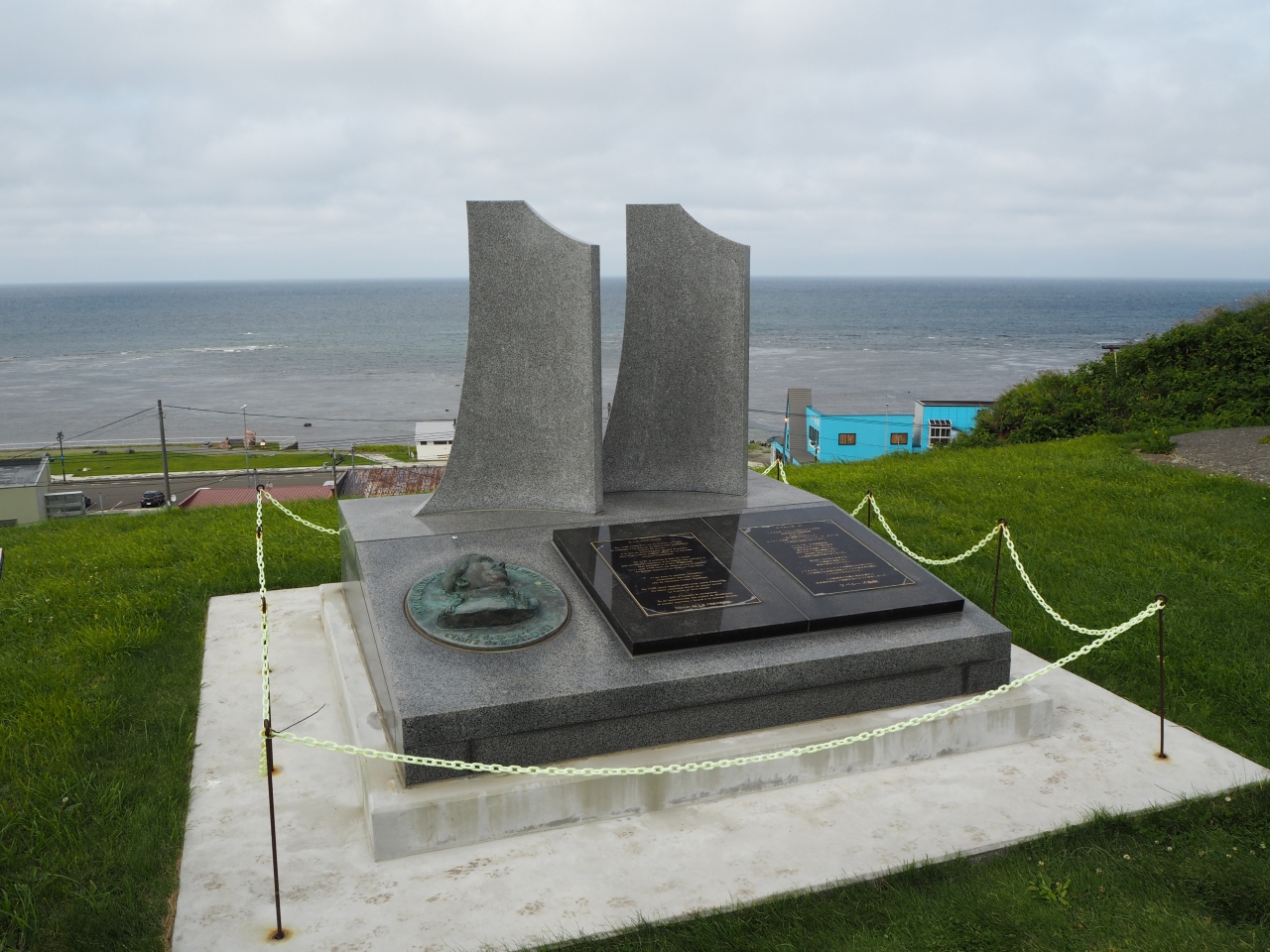 宗谷岬のすぐ南側の高台にある宗谷公園のなかにラ・ペルーズの記念碑があります。ラ・ペルーズはフランスの海軍軍人で1787年に宗谷海峡を発見、報告した人物で、世界的には宗谷海峡はラ・ペルーズ海峡と呼ばれています。フランス南西部のアルビ(ロートレックで有名な町)でラ・ペルーズはアルビノ出身ということで、銅像を見かけましたが、やはり彼の像などの記念碑は宗谷海峡にあるのがふさわしいです。