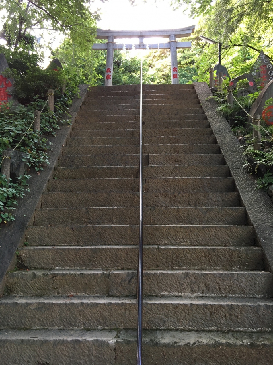 東洋文庫ミュージアムで、モリソン書庫の圧倒的な本棚を堪能した後、本郷通りを歩き、駒込富士神社にやって来ました。鳥居をくぐった先に、見上げるような急な階段があり、その上に拝殿がありました。想像していたよりも、広い境内で驚きました。