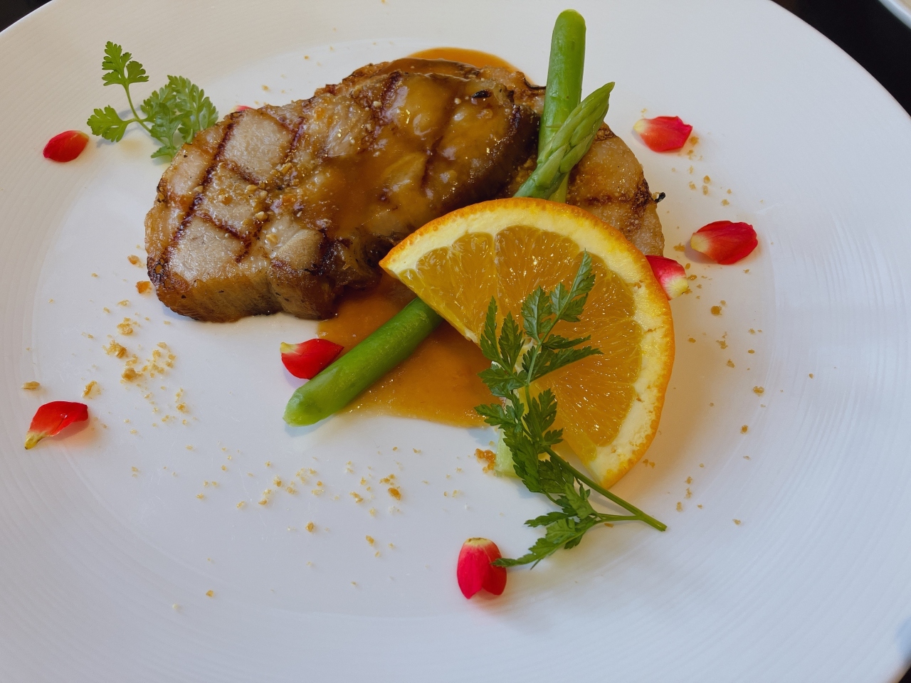 諏訪湖畔で信州十四豚のランチを楽しめます。