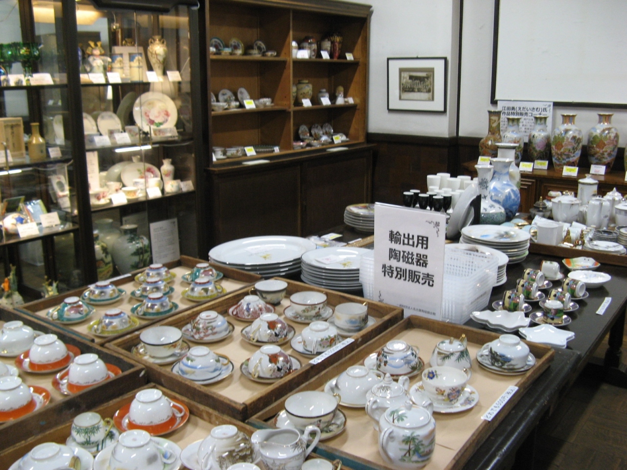 レトロモダンな建物の一階がギャラリーになっていて、受付にあるノートに名前を書けば自由に観覧でき、写真撮影も可能でした。展示室にはカップ&ソーサーや大皿、人形など戦前から戦後の輸出用陶磁器がたくさん展示されていて見ごたえがありました。輸出用の陶磁器が特別販売されていて、記念にミニチュアのカップを購入しました。無料で入館できるので、西洋陶磁器の好きな方にはおすすめです。