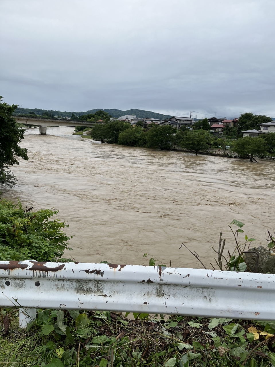 写真は大雨の翌日に最上橋の上から撮影した最上川ですが、流れが早く濁流がうごめき、ちょっと怖かったです。