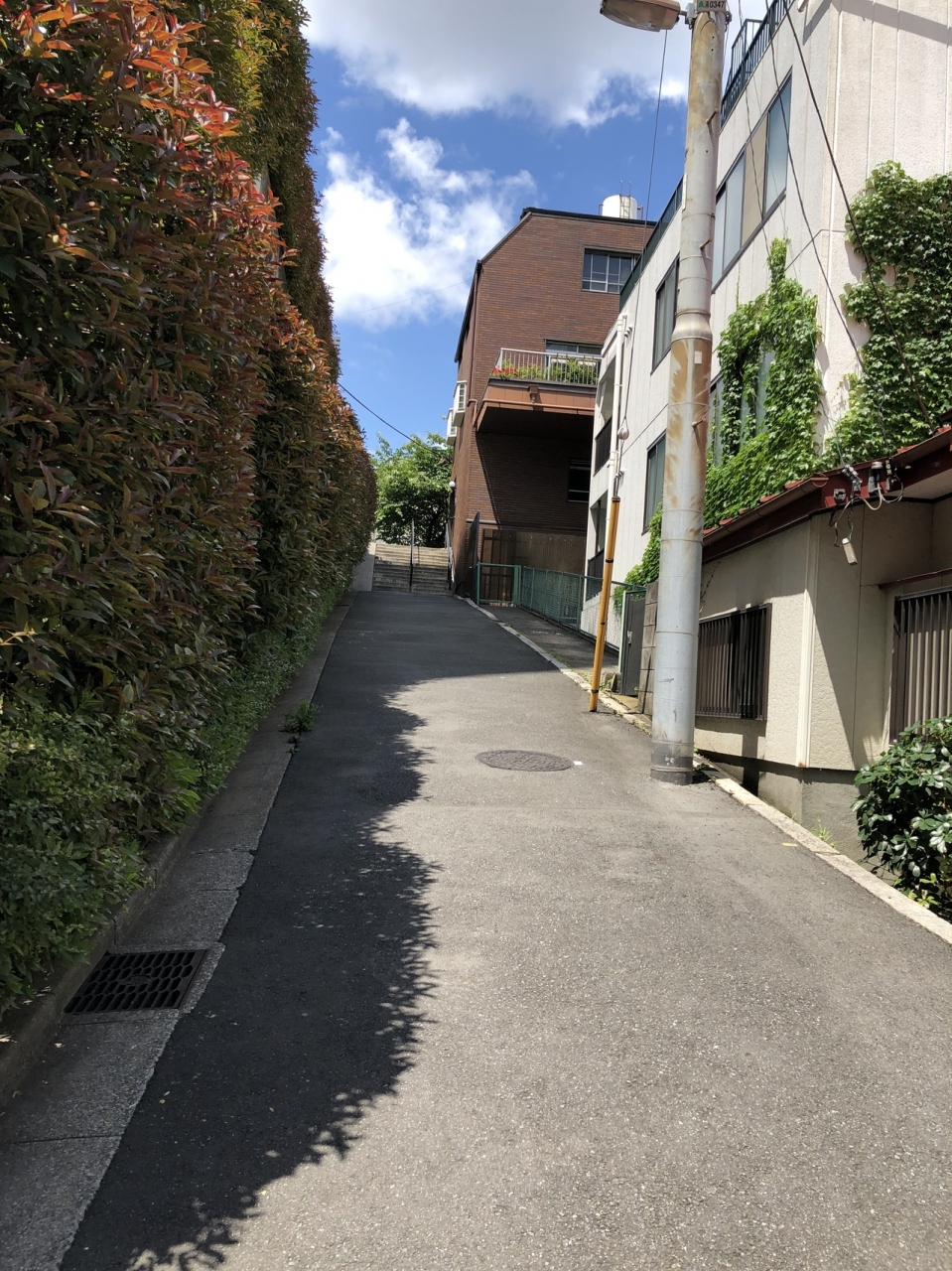 一部が階段になっているので、自動車での通り抜けはできないですね。爪を立てて上るほど急な坂というのがネーミングの由来でしょうが、実際に歩いてみると、それが実感できます。