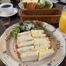 モーニングは、サンドイッチやパンセットなとから選べます。今回サンドイッチにしました。