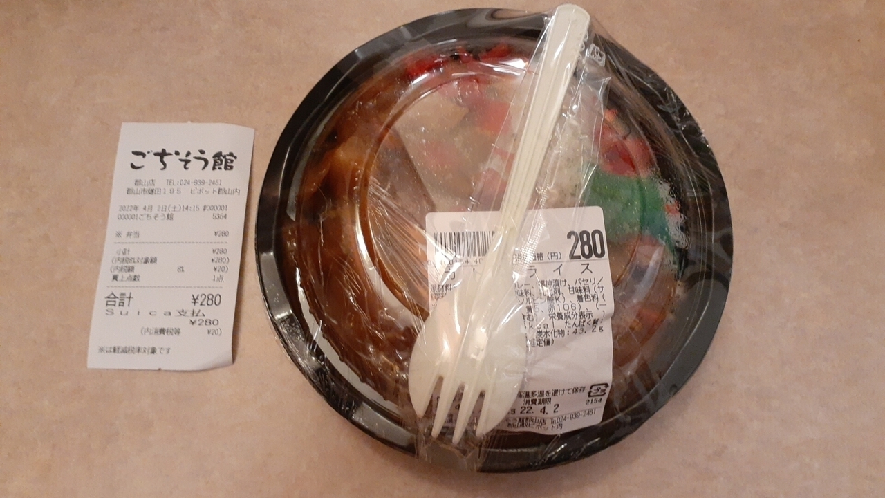 2022年4月2日に訪れ、当日は298円する「カレーライス」を購入しました。