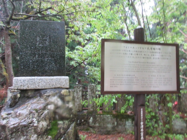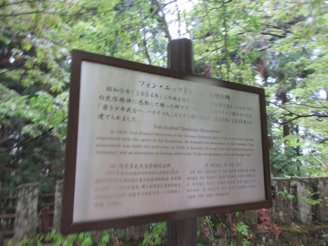 飯盛山に行きました。その山頂付近には広場のようになっているところがあり、そのにいろいろな石碑があるのですが、その石碑の一つがこれです。ドイツの方で、大使をされていた方が、白虎隊の精神に共感し送った碑文だそうです。世界に通じる精神なのですね。碑には十字の紋章などもありました。