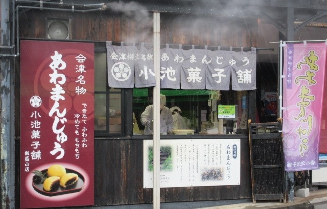 飯盛山に行きましたが、その山頂への道にある商店街の入り口付近にあるお店です。お客さんが多めでしたので気になって訪問しました。柳津で有名な「あわまんじゅう」のお店でした。粟と米で作ったお餅に餡が入っていておいしい。値段も手ごろであたたかくてよかったです。
