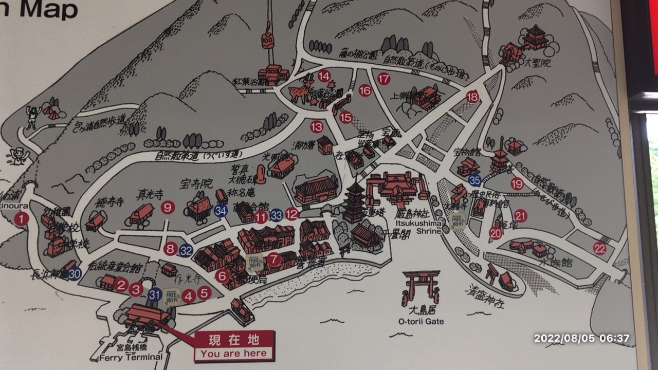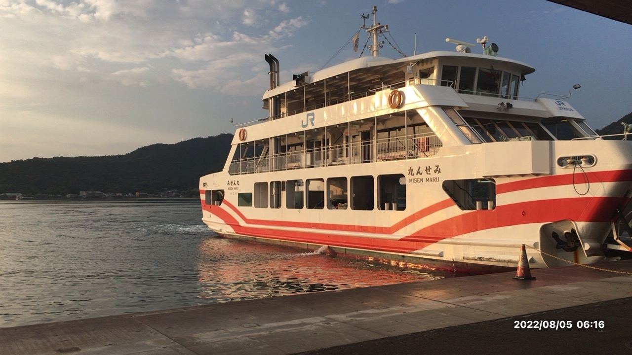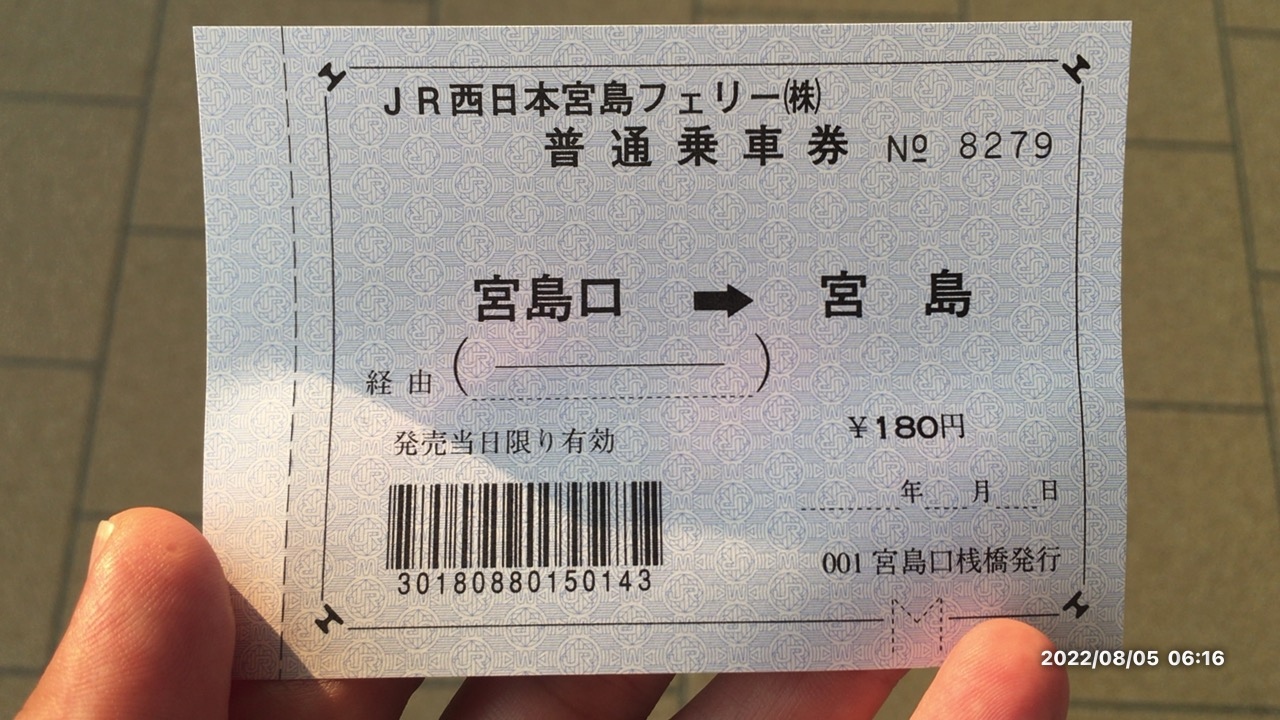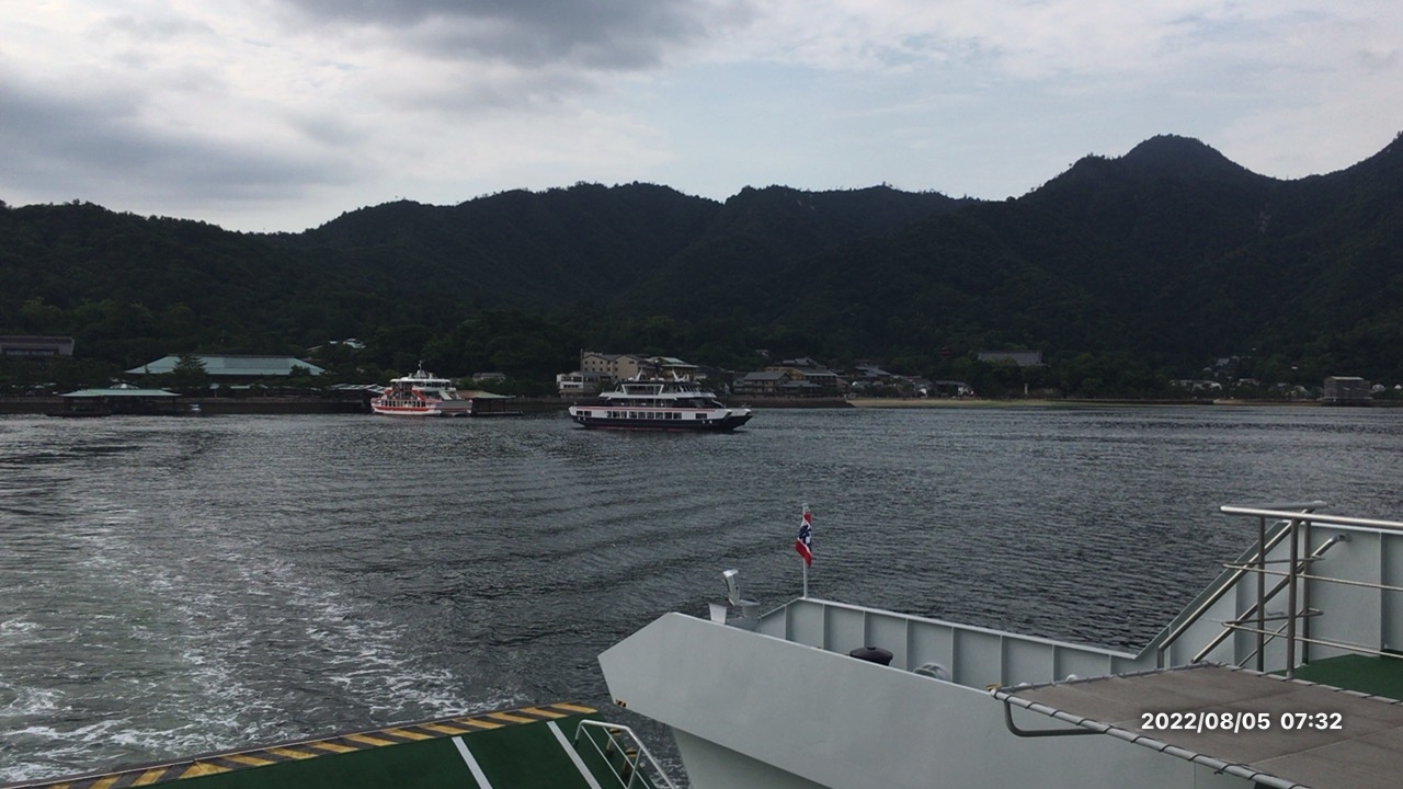 宮島に渡るにはフェリーしか無いと思いますが・・・便数が多い・安い・早いと便利だなと感じました。2社が交互運転で運航していて15分おきに出船していました。フェリーと言っても宮島を車で走る事は観光客には無いと思うので多くの人は人のみが乗る形と思います。自動車エリアには軽冷凍車、自転車など地元の足が乗っていました
