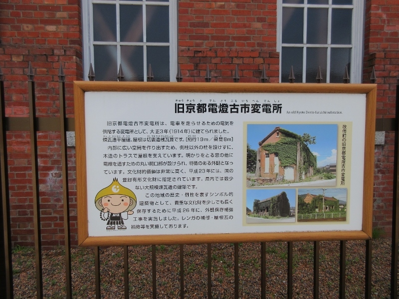永平寺からえちぜん鉄道永平寺口駅前に来た時に、駅前にレンガ造りのレトロな建物があるのに惹かれました。何だろうと近づいて見ると、旧京都電燈が越前電気鉄道を走らせるための変電所だとわかりました。赤レンガ造りで国の登録有形文化財として保存されています。
