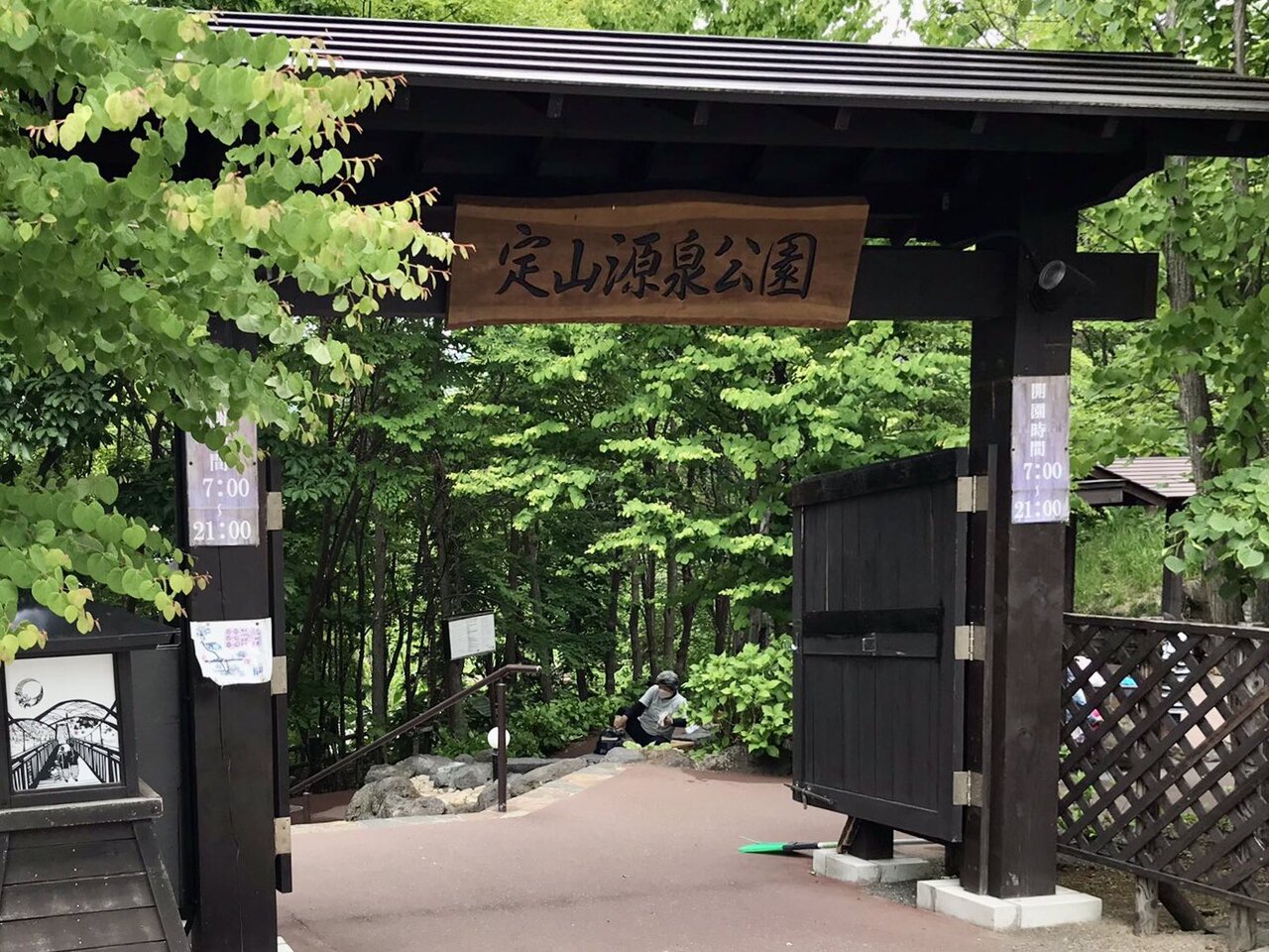見返り坂を下ったところに定山源泉公園があります。ちょうど行った時は、紫陽花がとてもきれいに咲いていました。源泉公園の中に、足湯があり、そのそばには、定山渓の名前の由来となった定山僧侶の像がありました。近くのおみやげ屋さんで生卵を買って、温泉卵を作ることもできるようです。