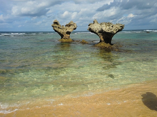 古宇利島の一番奥にあるティーヌ浜にあるハート型の岩です。