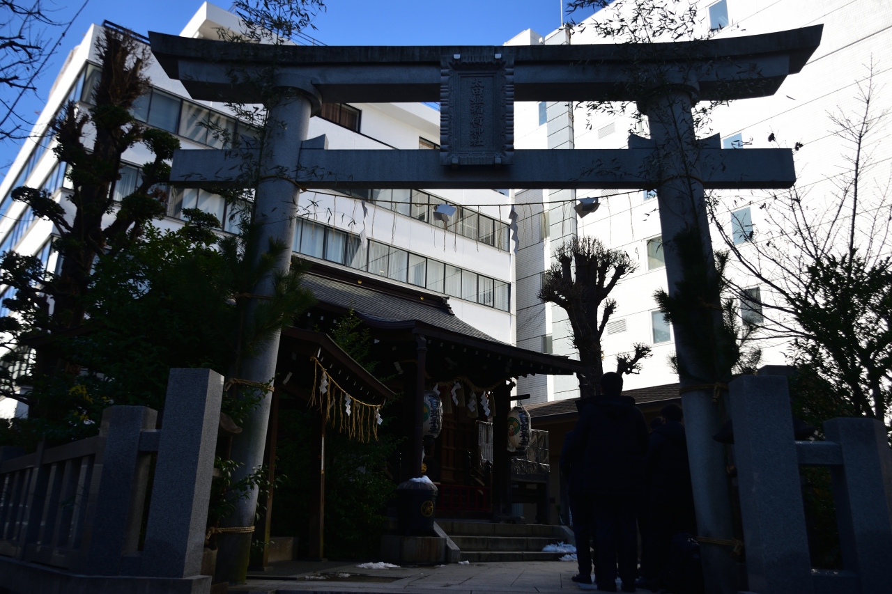 東京の都心にある神社です。こじんまりとした小さな神社ですが、地元の人を中心に参拝する人は多めです。交差点から見える一に鳥居とその奥に社殿があります。駐車場はなし、御朱印やお守りなどの販売もありませんが、地元を見守っている神社です。