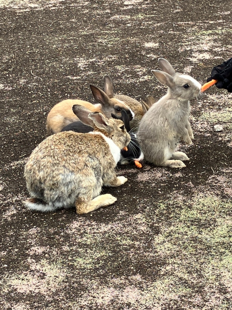 大久野島にうさぎを見にくのは3度目ですがコロナが始まってからははじめてです。うさぎの数が明らかに減っていました。フェリーを降りても少ししかいなくてびっくりしました。島一周を3回しました。良い運動なります。ねずみが増えています。子供のうさぎで動かない子がいて心痛みました。