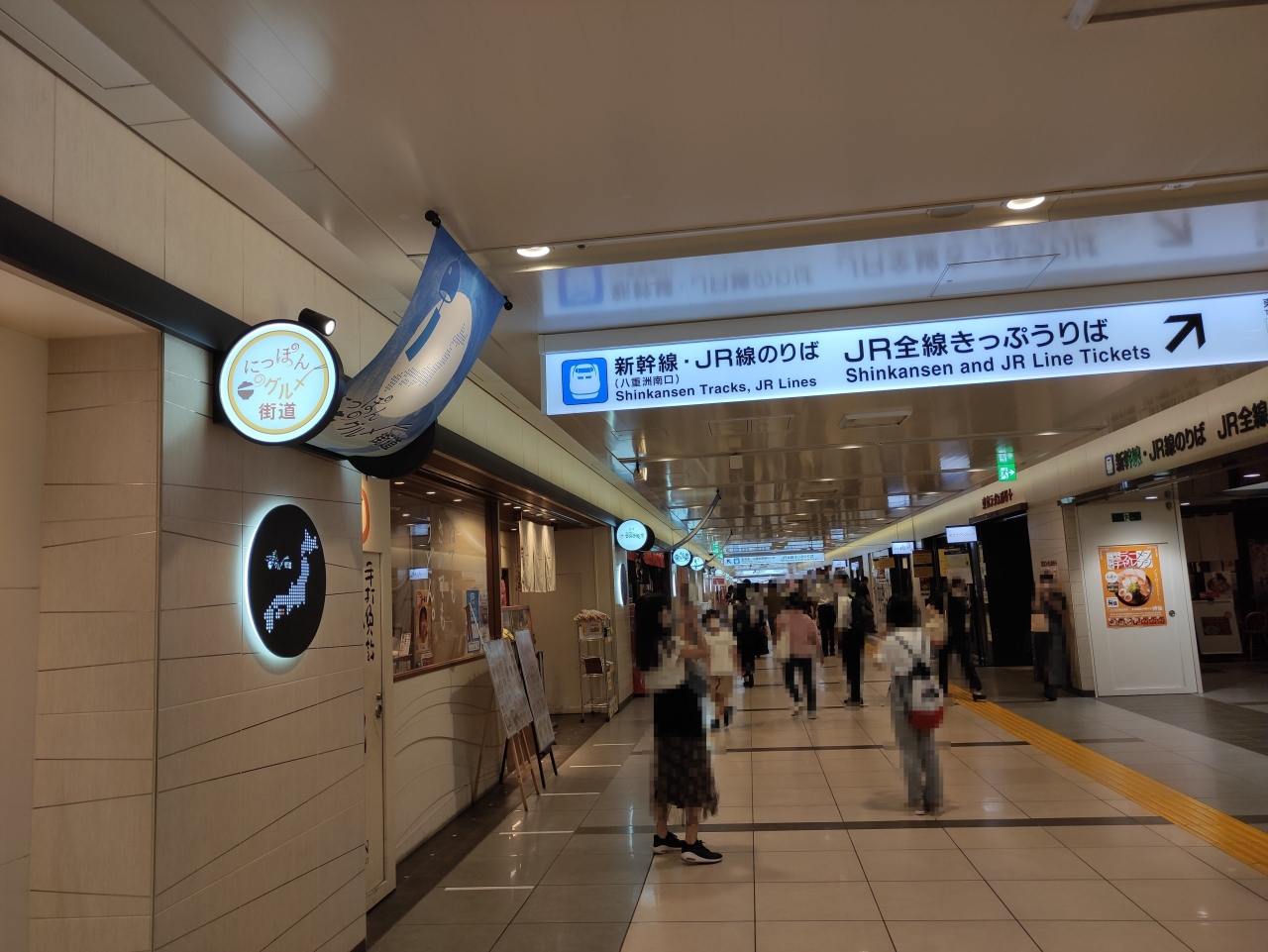 JR東京駅の改札外にあり、新幹線や在来線の八重洲側の各改札を出たところにありました。地下1階から地上2階までの構成で、ラーメンやキャラクターなどのストリートがあり、各お店のサイズが小さい分だけ、お店の数がすごく多く感じました。